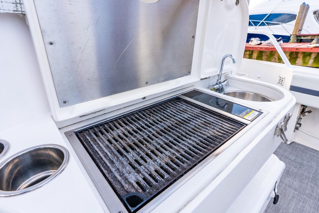 Electric Grill & Sink (hot&cold) with Corian counter & split Fiberglass lid molded on Aft