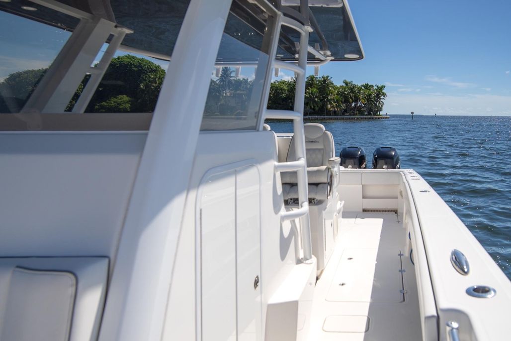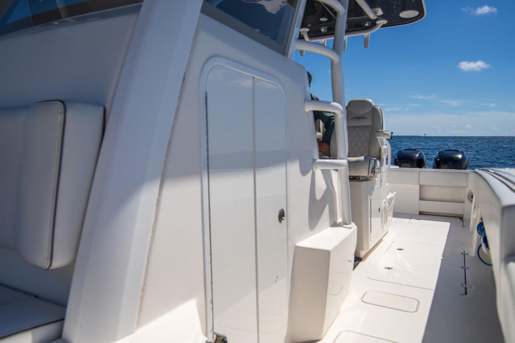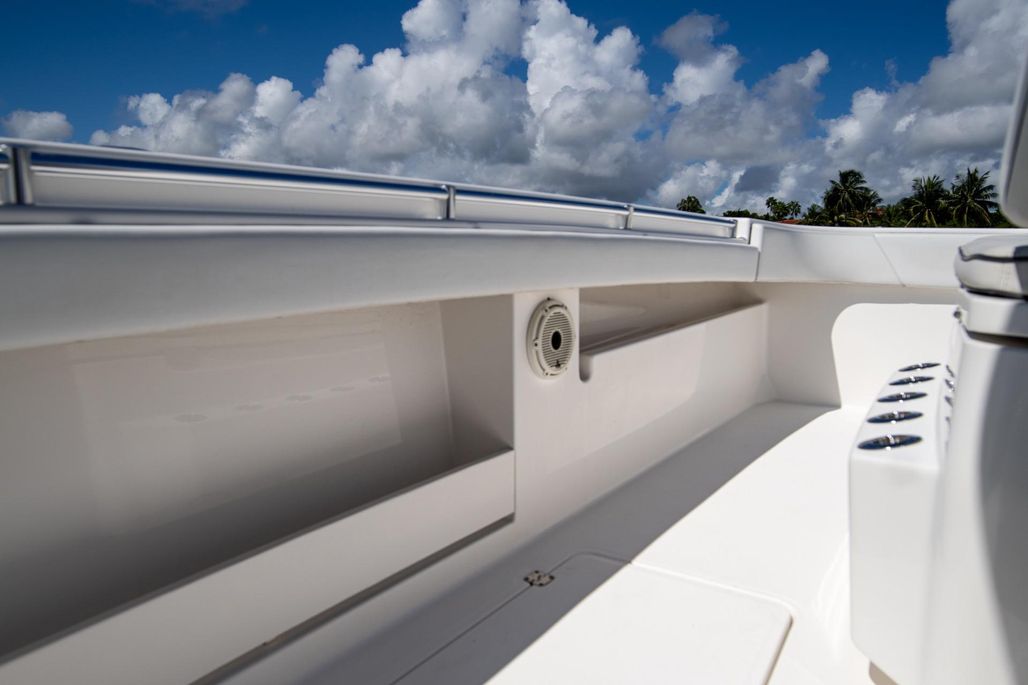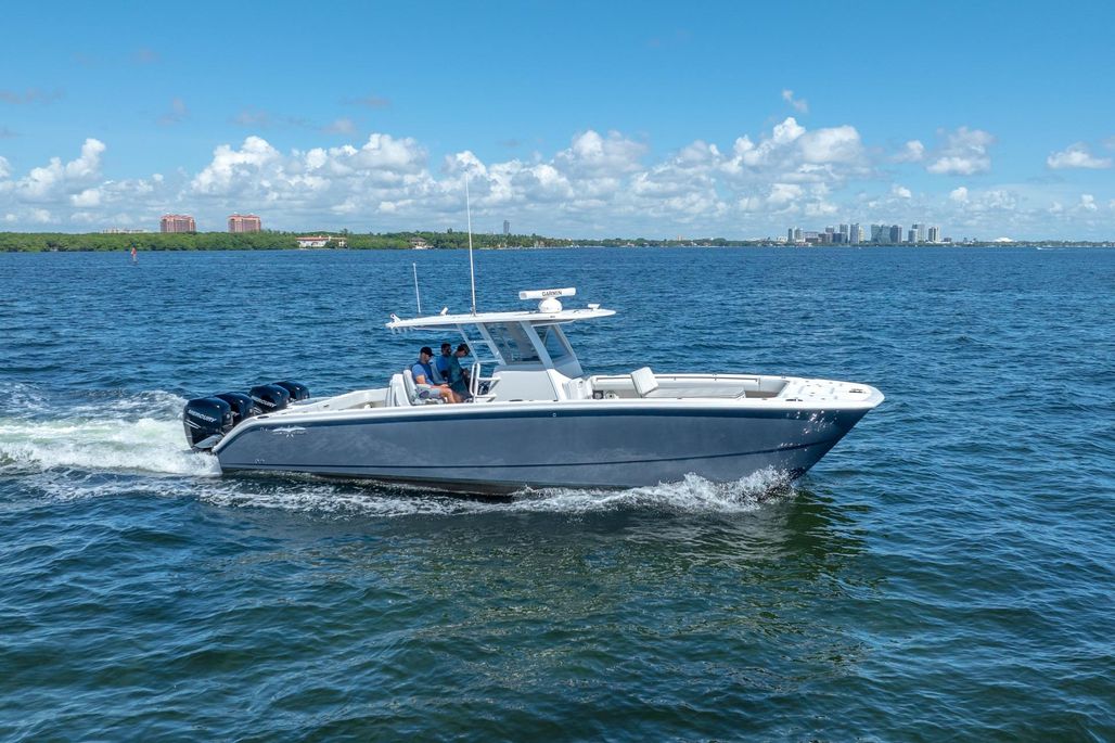 Powered by quad Mercury 350hp Verado engines, this 37’ Invincible catamaran delivers the perfect blend of speed, efficiency and offshore performance. Known for its superior ride and stability, the invincible 37 Cat handles offshore with confidence while offering generous deck space for fishing and entertaining.