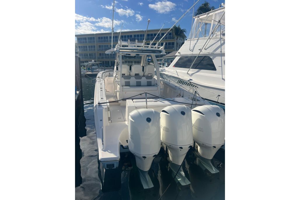 The S 368 Sport provides a stunning exterior profile with industry-leading features. If you’re searching for a state-of-the art luxury center console, meet the S 368 Sport. This 2019 Pursuit S 368 Sport, a stunning center console boat that combines performance and elegance. With an overall length of 37.8 feet, this vessel is crafted from durable fiberglass and features a sleek Deep Vee hull design, ensuring a smooth ride even in choppy waters. Powered by three robust Yamaha outboard engines, each delivering 350 horsepower, this boat promises exhilarating speed and exceptional handling. The thoughtfully designed layout includes a head for convenience, making it perfect for extended outings on the water. Ideal for both leisurely cruises and adventurous excursions, the Pursuit S 368 Sport is equipped with modern features to enhance your boating experience. Whether you're fishing, entertaining, or simply enjoying the sun, this boat is ready to deliver unforgettable moments on the water. Experience the perfect blend of style and functionality with the Pursuit S 368 Sport.