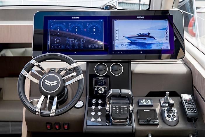 Introducing the stunning 2020 Azimut Nexus X47, a remarkable express cruiser that combines elegance with performance. With an overall length of 46.75 feet, this vessel features a sleek modified Vee hull crafted from durable fiberglass, ensuring both stability and style on the water. Powered by three Yanmar 8LV370 diesel engines, each delivering an impressive 370 horsepower, the Nexus X47 achieves a cruising speed of 35 mph and a maximum hull speed of 45 mph, making it perfect for exhilarating adventures. This model offers comfortable accommodations with two cabins and two heads, providing ample space for relaxation. Equipped with an electric windlass, it enhances convenience while anchoring. Whether you're enjoying a leisurely cruise or a thrilling ride, the Azimut Nexus X47 promises an unforgettable experience on the water, blending luxury and performance seamlessly.
