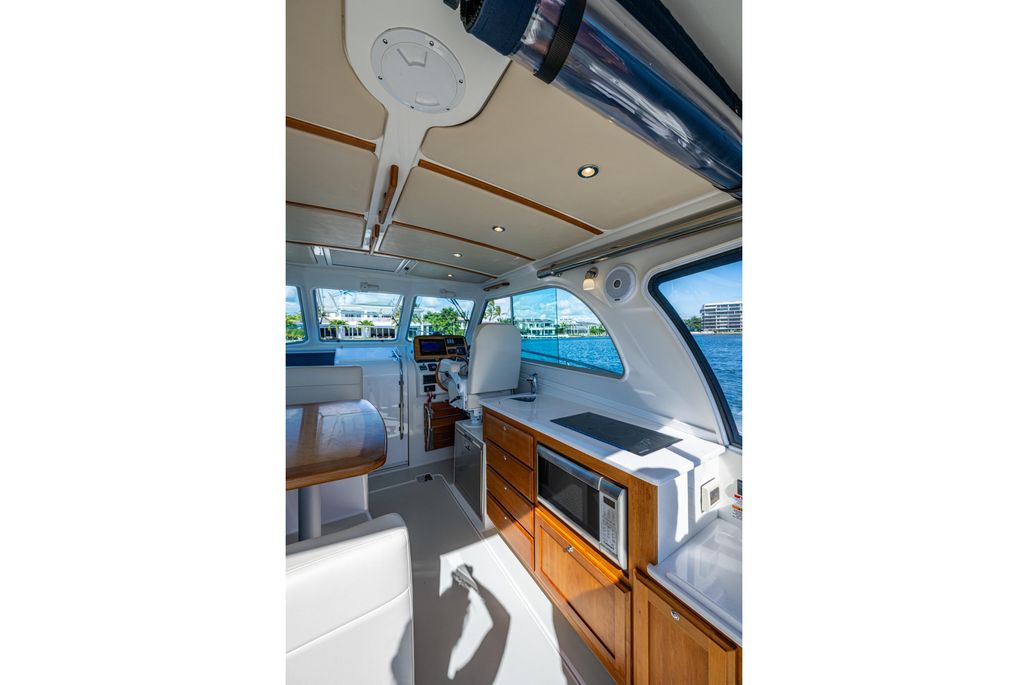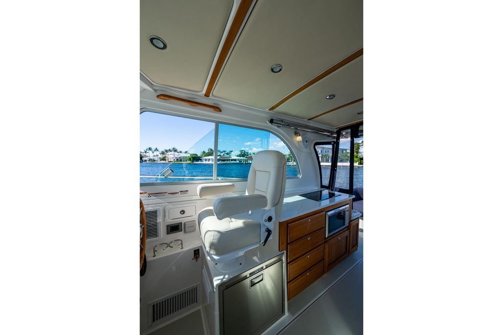 Her Flag Blue hull, climate controlled helm deck, and custom canvas package create an ideal platform for both relaxing day trips and extended cruising. With upgraded power systems, premium Garmin electronics, and thoughtful factory options, this 34O is truly turn-key and ready for her next adventure.