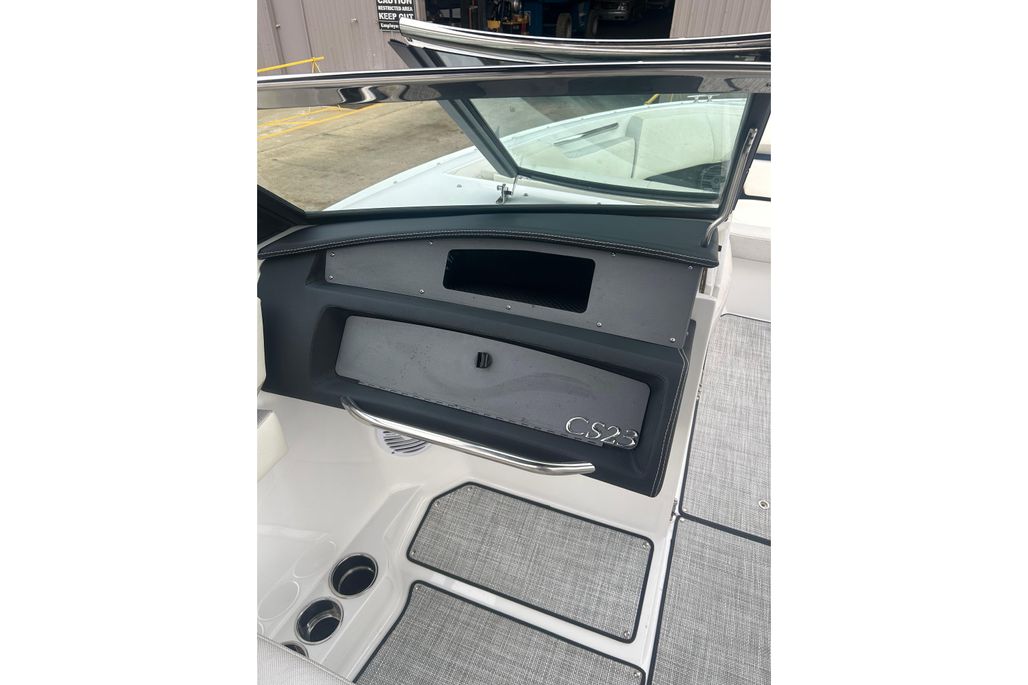 Packaged expertly in just over 23 feet, the Cobalt CS23 is the ultimate combination of efficient design, peak performance, and attention to detail. Sleek, simple, and artful, the detailed interior includes Cobalt-branded coaming pads, intricate colored stitching details, digital helm instrumentation and a six-speaker Bluetooth sound system. For those who don’t want to compromise luxury or performance – but still want to turn heads – the CS23 is the perfect choice.