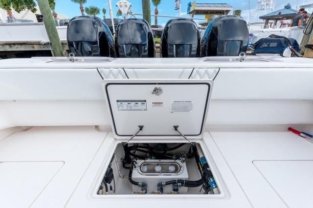 • 3 livewells (2 transom + 1 in-floor) with SeaChest system