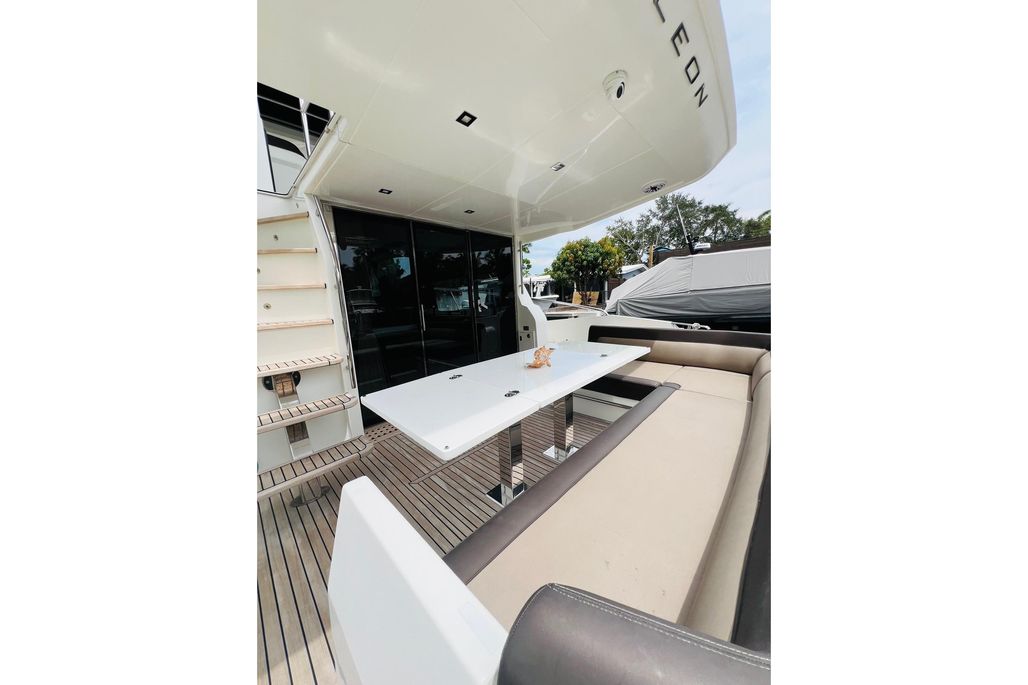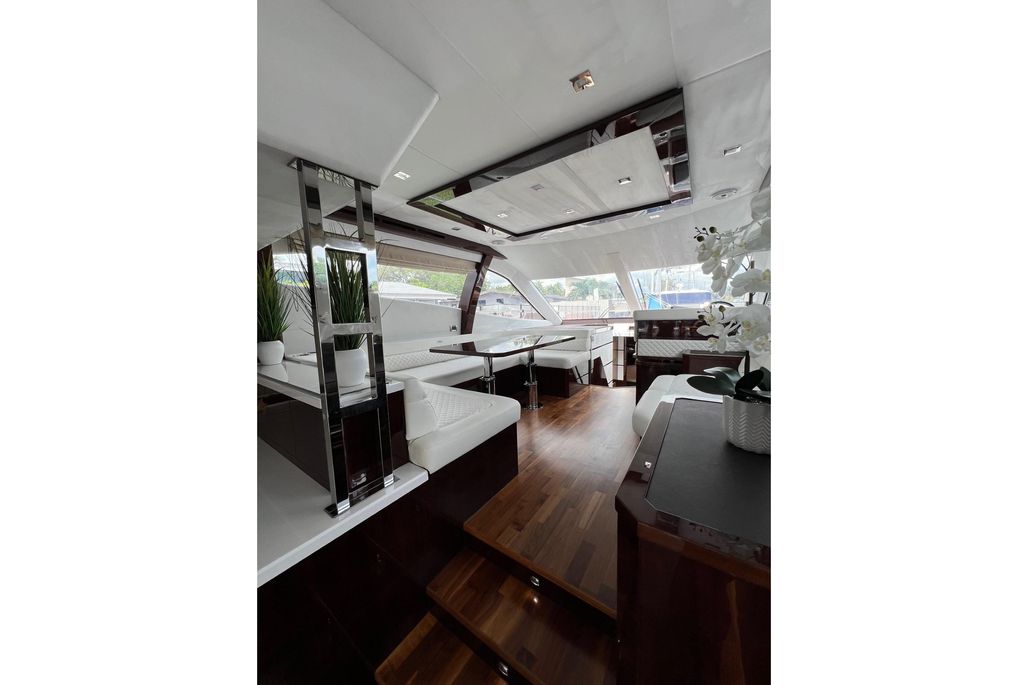 Seamless Indoor–Outdoor Flow: Sliding glass doors connect the salon and cockpit, creating one generous living and entertainment area.