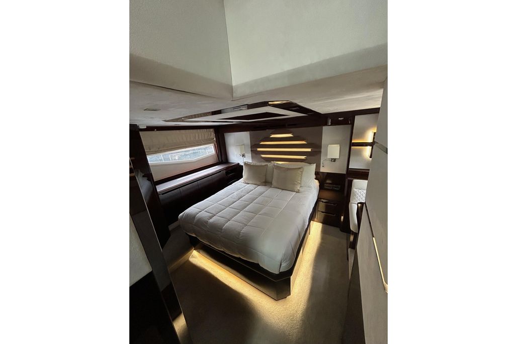 Comfort Enhancements: Optional Seakeeper gyro stabilizer ensures smooth sailing. Bow & stern thrusters plus yacht controller simplify docking and close-quarters maneuvering.