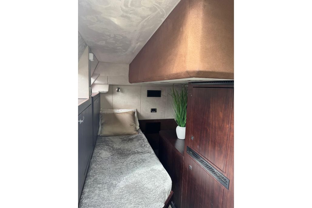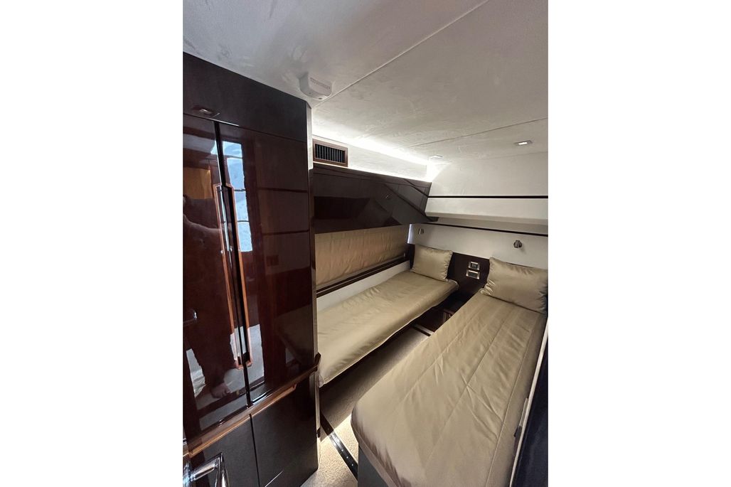 Three Premium Cabins, Two Heads: Includes a full-beam owner’s suite with en-suite head and makeup station, a VIP cabin, and a guest cabin with twin beds that convert to a queen.