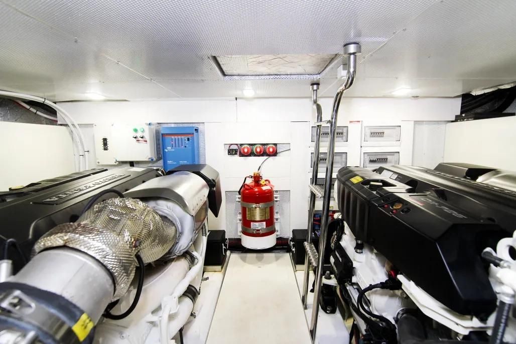 Powerful & Efficient Cruising: Twin Volvo Penta D11 diesels (725 hp each, 1,450 hp total) with shaft drive deliver a relaxed cruise and confident handling.