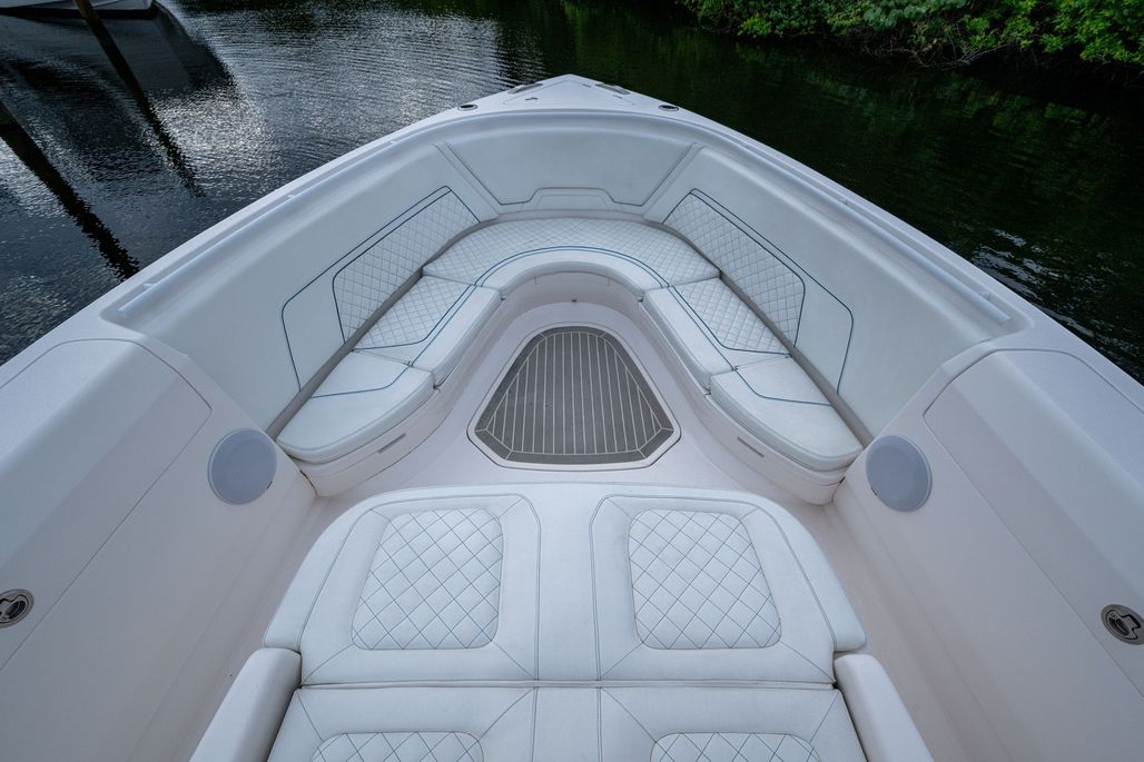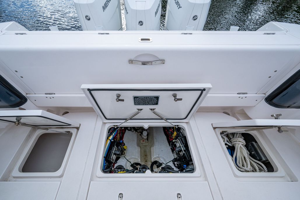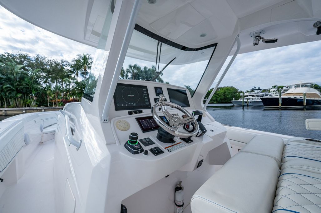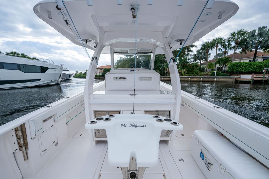 Beyond the engines, the Intrepid pedigree shines through with a deep-V hull designed for offshore confidence, a spacious cockpit with fishing amenities and lounging flexibility, and a beautifully finished cabin with berth, galley, and enclosed head. Every detail reflects Intrepid’s reputation for premium craftsmanship and custom fit-and-finish.
