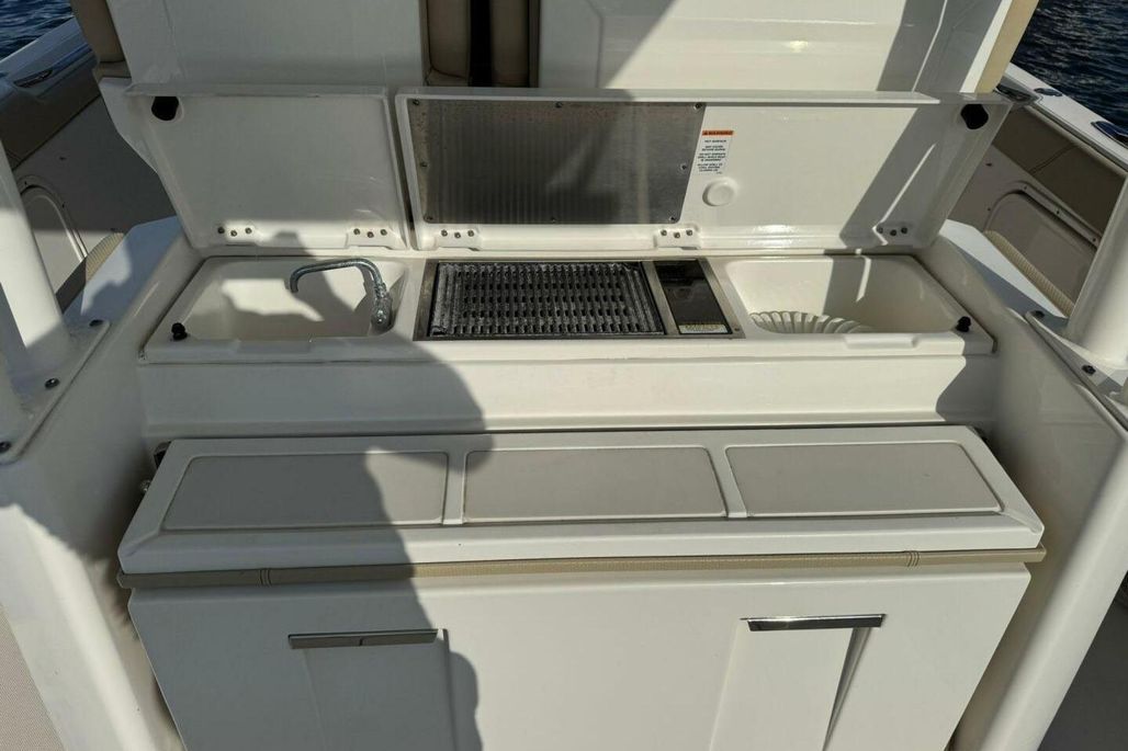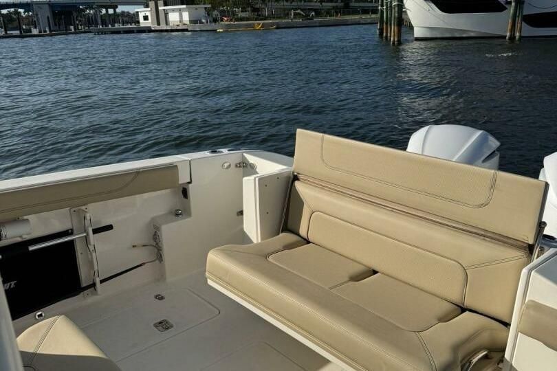 The S328 Pursuit Sport is a great all-around platform for cruising, diving, fishing, and performance. This boat has something for everyone, forward and aft seating, side and aft dive doors, grill, removable dining tables, GARMIN electronics package, bow thruster, hardtop with power aft sun shade, head, berth in the cabin with air conditioning, generator, no bottom paint, and excellent performance.