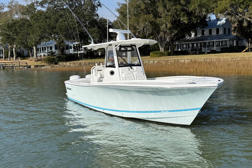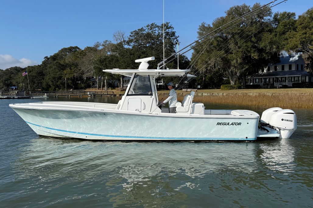 2020 Regulator 31 powered by twin Yamaha F300NCAs with Yamaha Helm Master, Digital Controls, and Yamaha Joystick. Price also includes a Magic Tilt Triple Axle Aluminum Trailer.