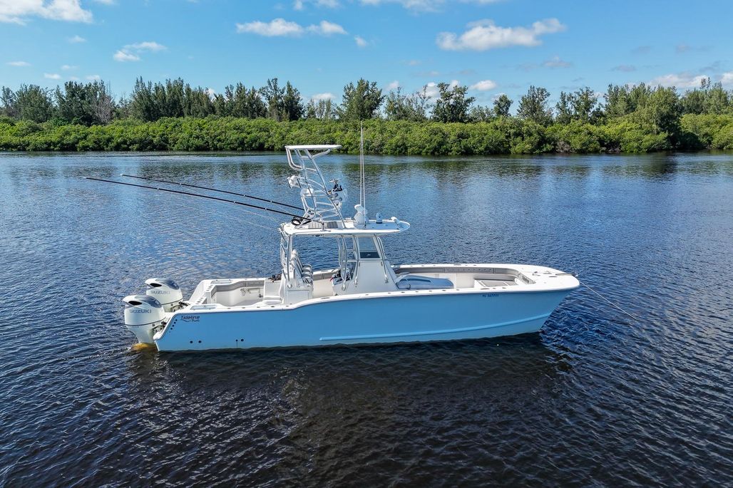 Introducing the 2020 Tideline 365 Offshore, a remarkable power catamaran that seamlessly blends performance and comfort. With an overall length of 36.4 feet, this vessel boasts a sleek fiberglass hull designed for stability and efficiency on the water. Equipped with twin Suzuki DF350 outboard engines, each delivering an impressive 350 horsepower, it offers exhilarating cruising speeds of up to 30 knots and an extensive range of 630 miles, perfect for adventurous voyages. The 365 Offshore features advanced joystick control for effortless maneuverability, complemented by an electric windlass for convenient anchoring. This catamaran is designed for those who appreciate both speed and luxury, making it an ideal choice for exploring coastal waters or enjoying leisurely outings. With its modern design and robust engineering, the Tideline 365 Offshore promises an exceptional boating experience for enthusiasts and families alike.