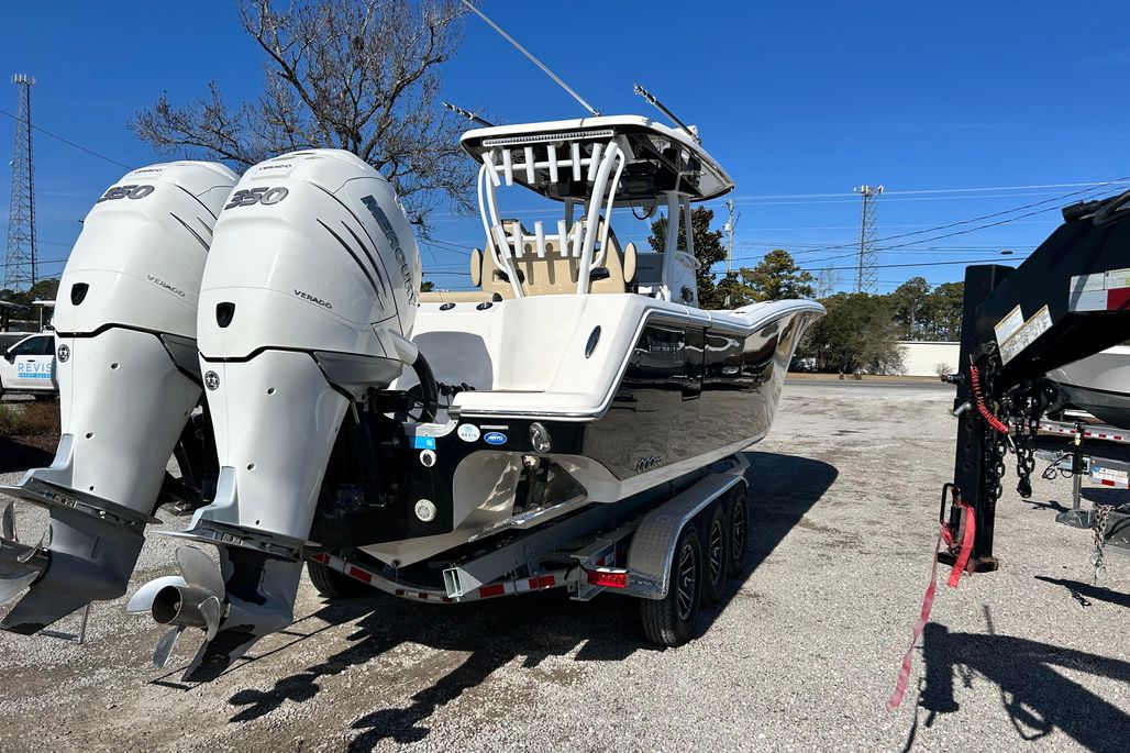 The 2020 Tidewater 32 is a premium offshore center console built for serious performance, range, and comfort. Powered by twin Mercury 350 Verados with 352 hours and loaded with Garmin electronics, joystick, and high-end amenities, this boat is turnkey and offshore-ready.