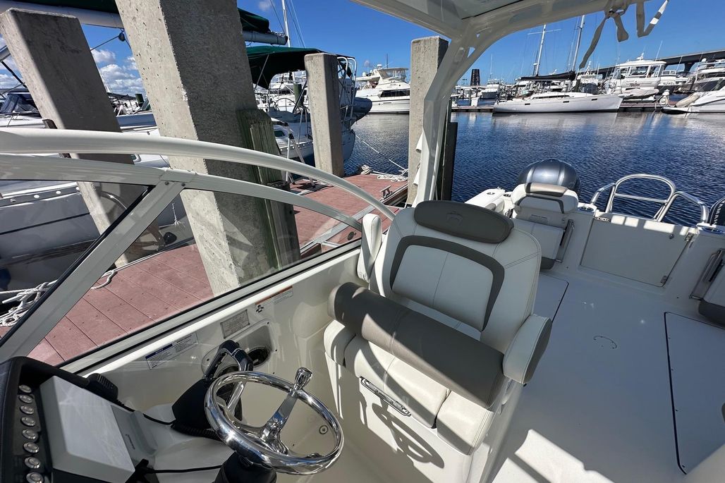 - Helm and passenger dual custom seats with nearby recessed stainless steel cup holders