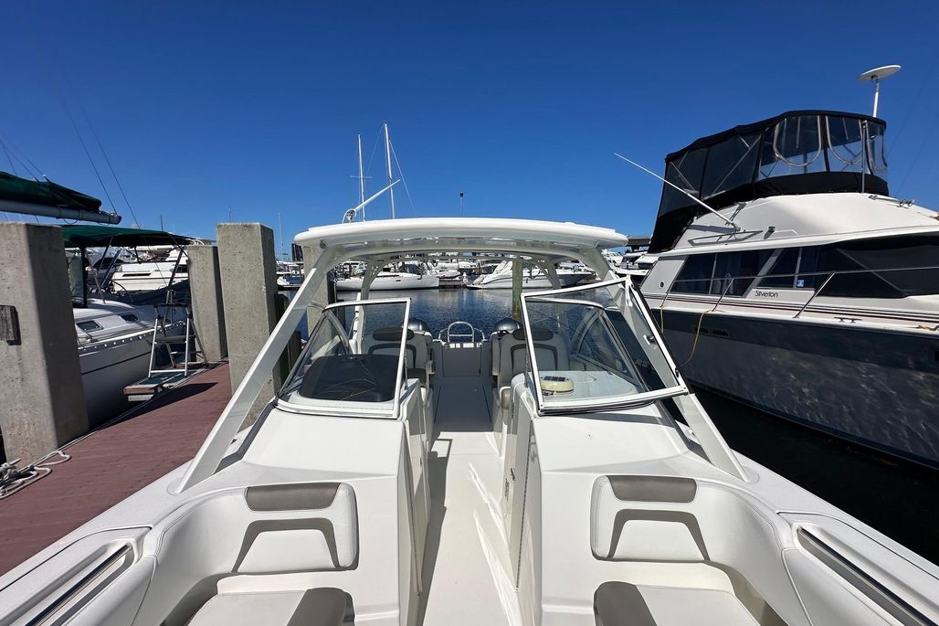 The 296DC brings you a smoother ride, shallower draft, and greater stability even in rough seas. And, while it’s built for comfort, it delivers plenty of speed. Features include a lower-profile hardtop & frame, improved deck spacing, comfortable aft-facing softback seats with safety handrails, a 25-gallon live well located under the port seat box, and a 125-quart fish box located under the starboard seat box, updated dash and switch panel, USB outlets, and courtesy lighting in the bow. No matter what your watersports pleasure, this boat will deliver and then some.