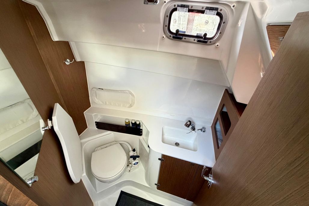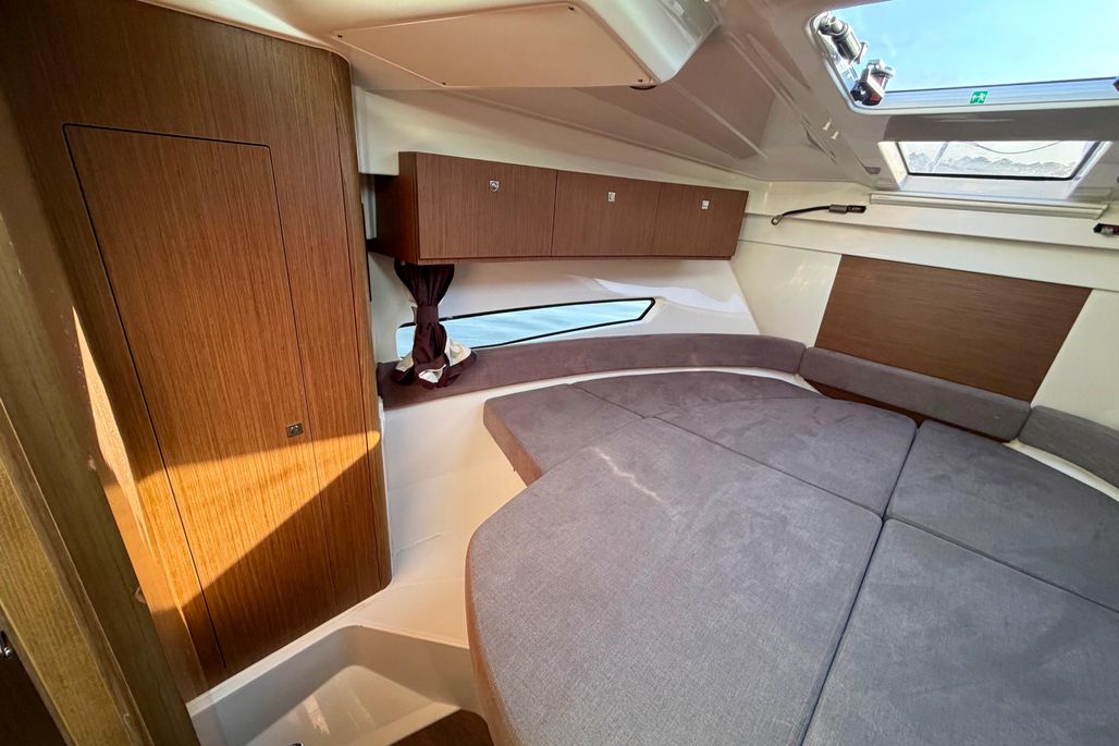 Two separate cabins, one galley and a cleverly fitted shower room make the Antares 9 the ideal boat for cruises with family and friends! With wraparound windows, the pilothouse has a panoramic view and is incredibly bright. There is a real feeling of space and the lounge is cleverly organized with a co-pilot seat that swings round. This means you can sit facing the sea or facing the chart table.