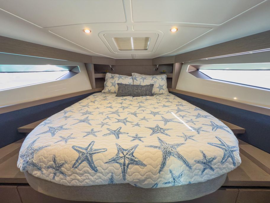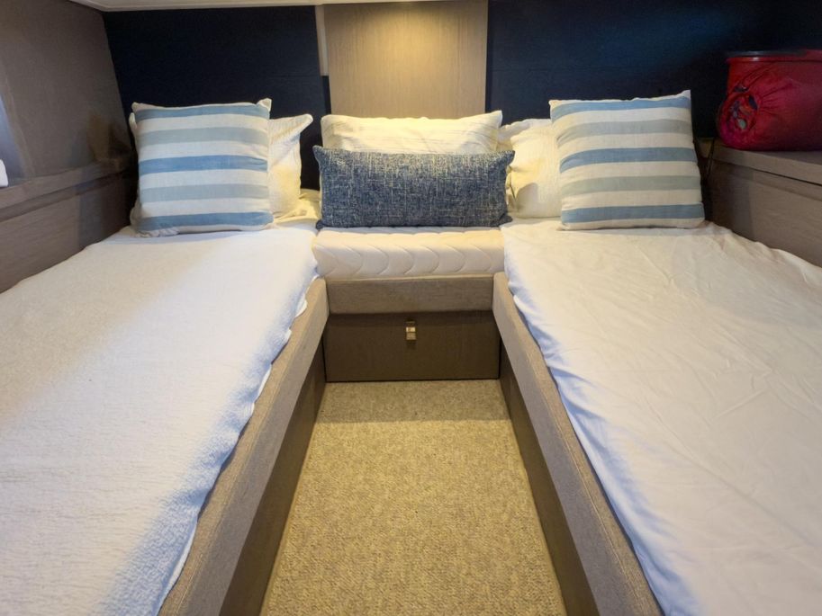 The lower deck is extremely comfortable, making it ideal for cruising and overnights. Apart from the galley and the head, there are two closed-off private cabins, each with beds parallel to the boat’s centerline, offering optimum quality of life on board.