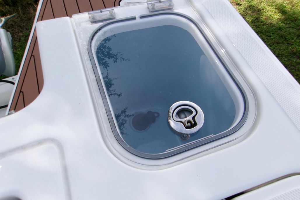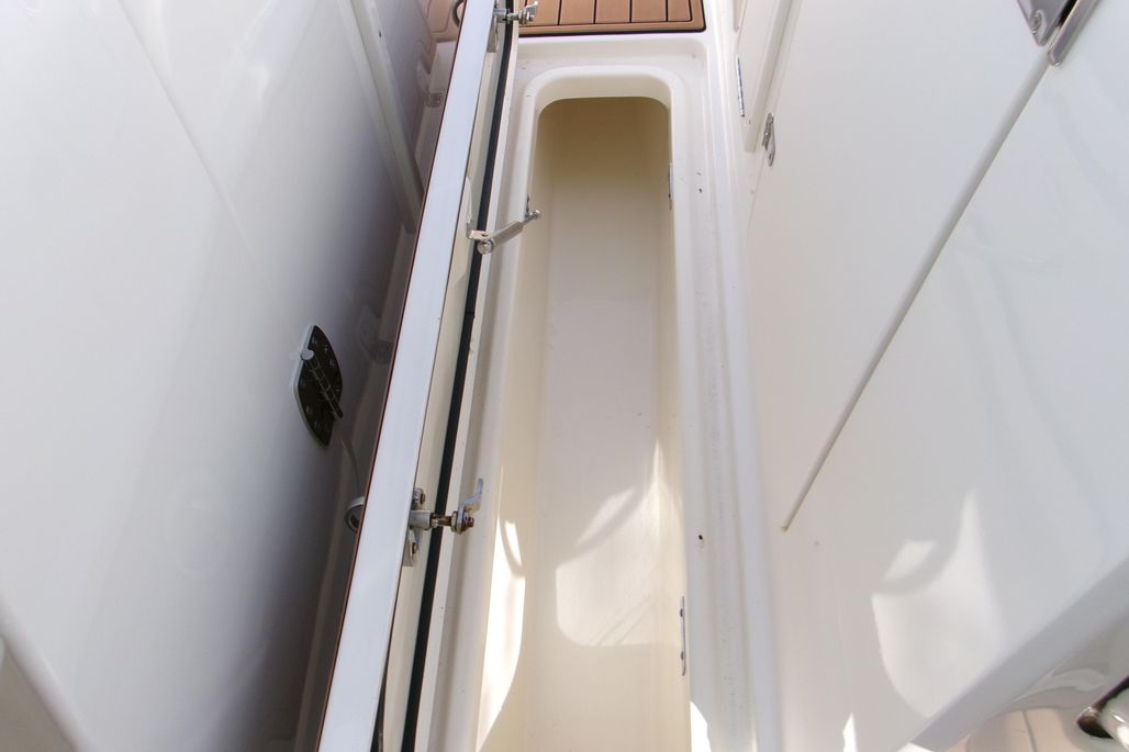 - Fishing features include convenient rod storage accessible via the bow, a centerline fishbox and an optional aft livewell