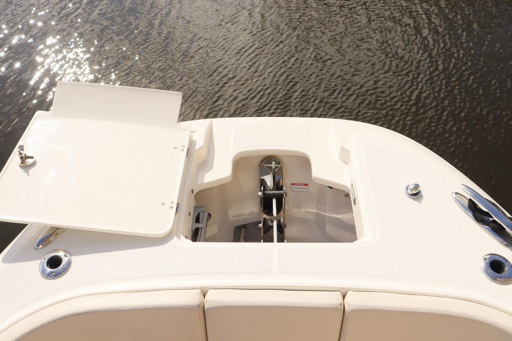 - Port Side Cuddy with Bench Seat that Converts to Berth and Large Glass Sunroof for Natural Lighting