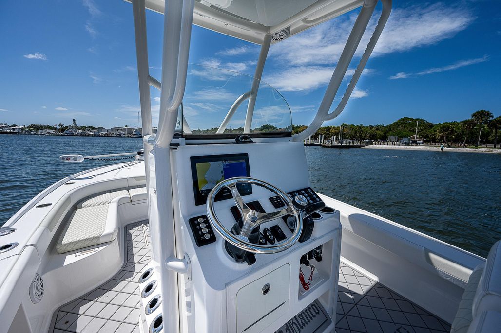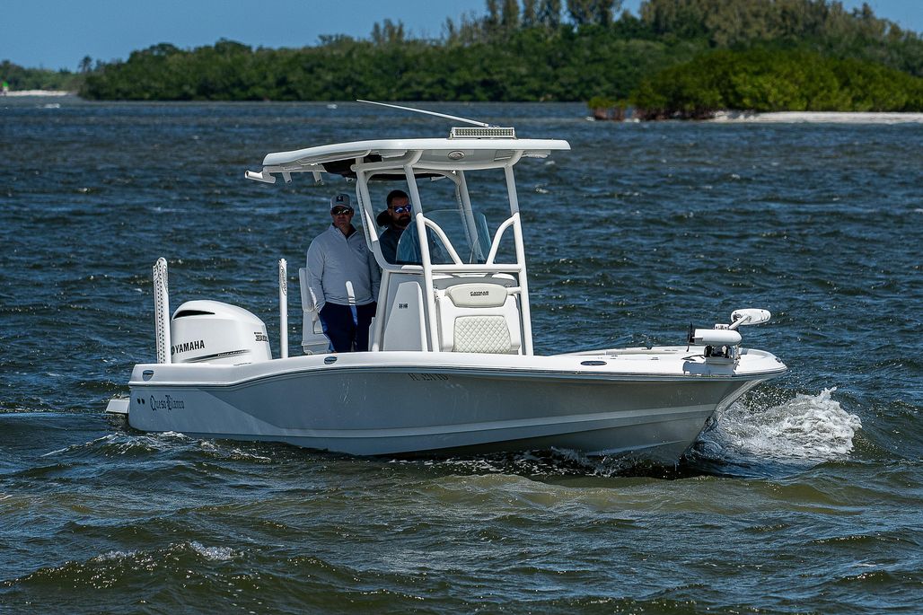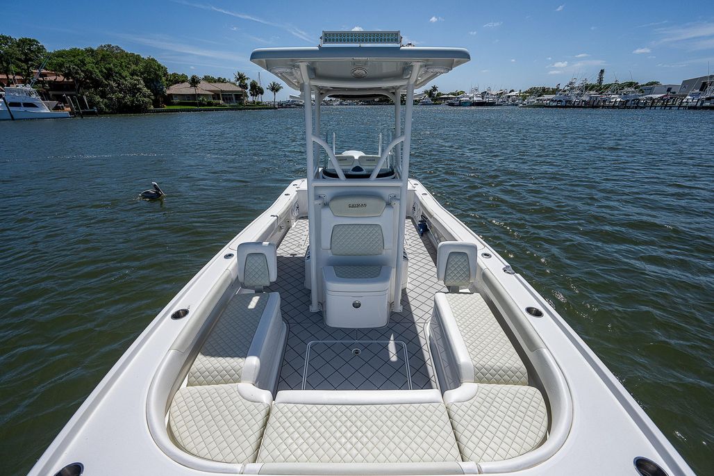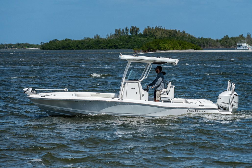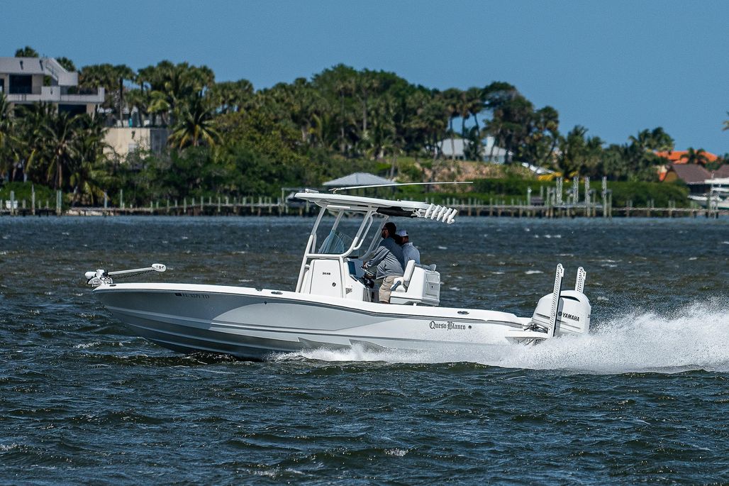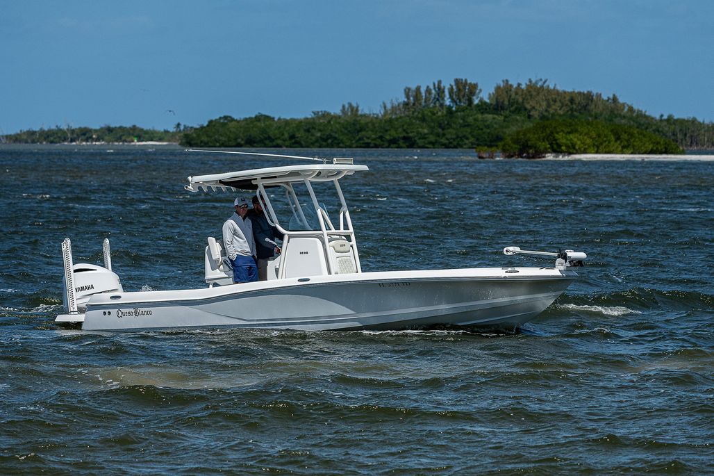 Queso Blanco is loaded! This 2021 Caymas 26 HB features dual Power-Pole Blades, a jackplate, Custom Deck IT, Garmin marine chartplotter & VHF, a JL Audio system, and the whole package is ceramic coated!