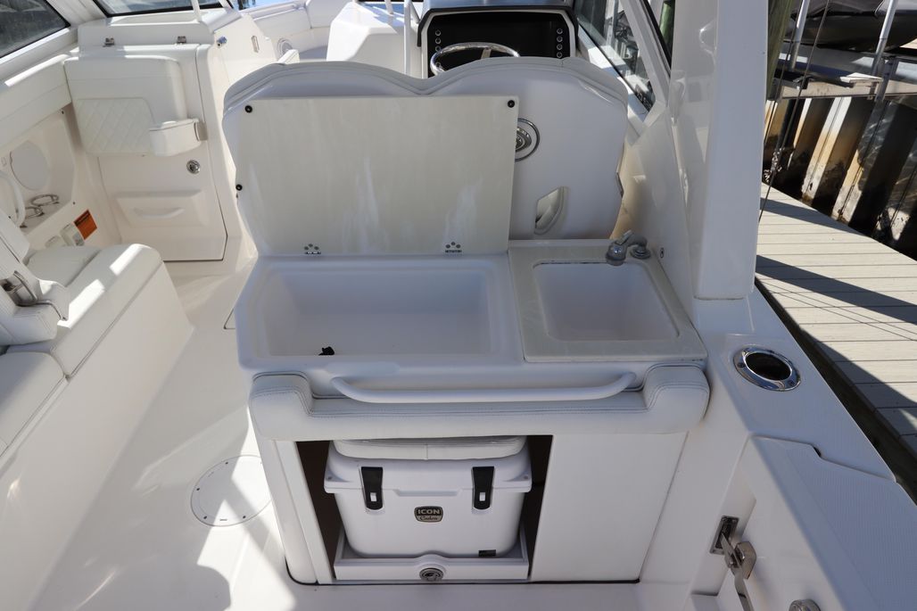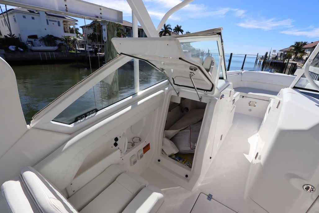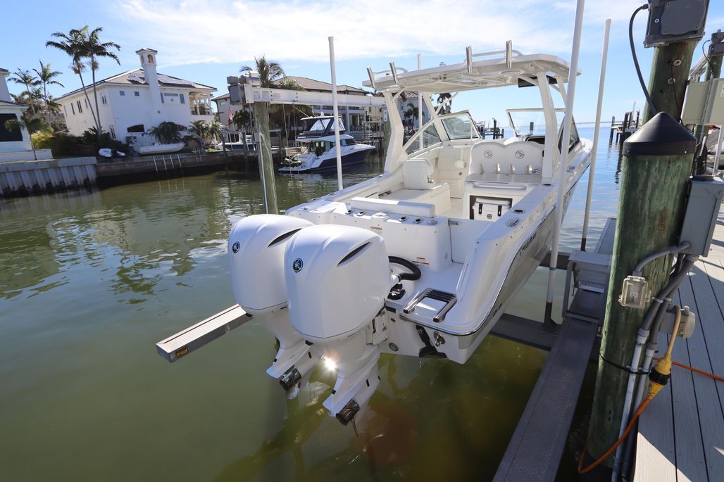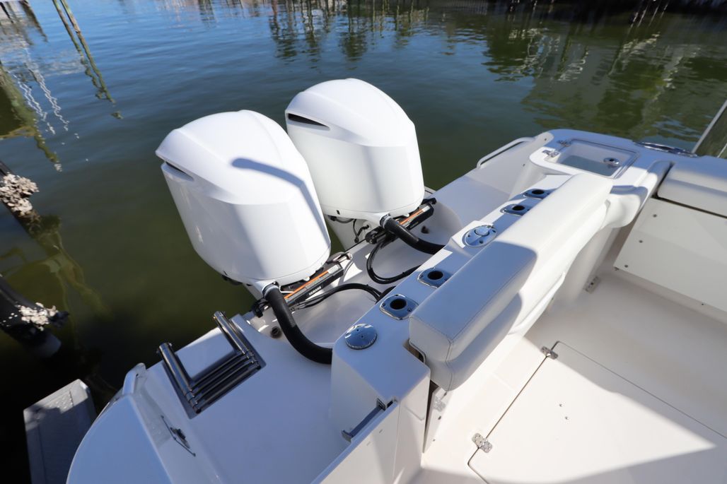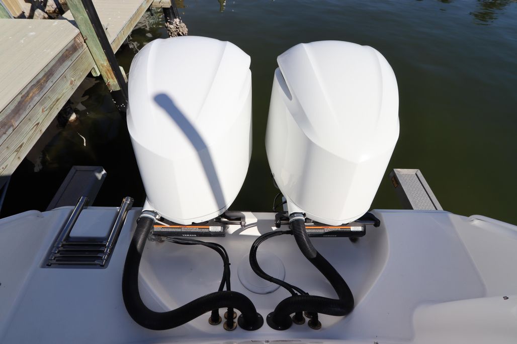 Introducing the 2021 Edgewater 262CX Crossover, a remarkable dual console boat that combines style and performance. With an overall length of 26'5", this vessel boasts a sleek fiberglass hull designed in a deep vee shape, ensuring a smooth ride through the water. Powered by twin Yamaha outboard engines, each delivering 250 horsepower, it achieves an impressive cruising speed of 35 mph and a maximum hull speed of 50 mph, making it perfect for thrilling adventures. Equipped with an electric windlass, this boat enhances convenience while anchoring. The thoughtful design includes a head for added comfort during outings. With only 45 hours of use, this well-maintained model promises reliability and enjoyment for years to come. The Edgewater 262CX Crossover is ideal for those seeking a blend of luxury and functionality on the water, making every journey an unforgettable experience. This boat is ready for her next owner with just having a full engine service and detail December 2025!