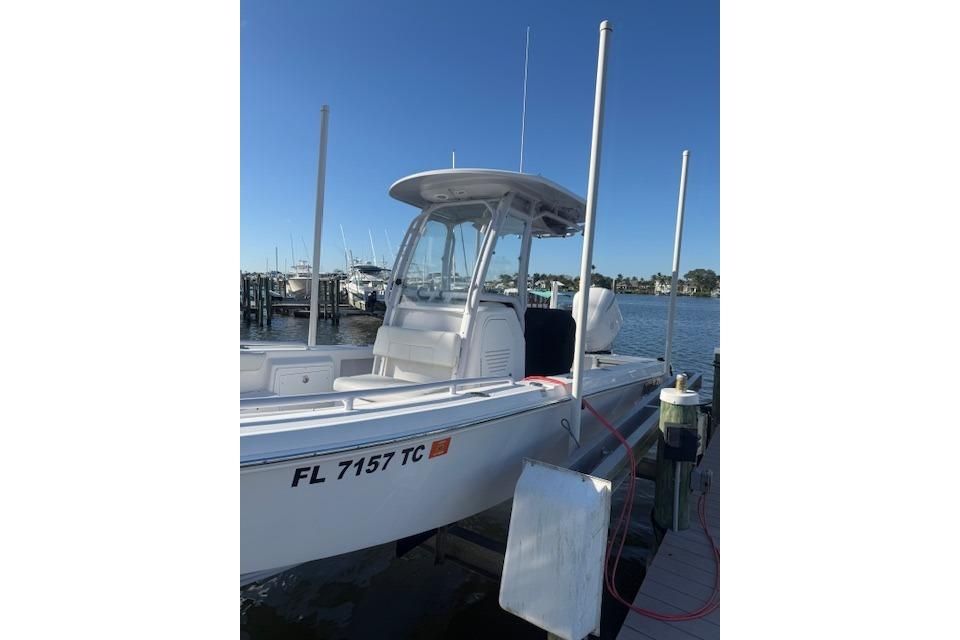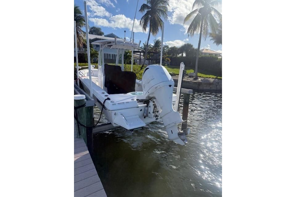 Low hours on the Yamama 300, power pole shallow water anchor, minn kota terrova 36 volt trolling motor. Turnkey ready for back country fishing or nice Florida offshore days. This boat has been lift kept since new and does not come with a trailer. There are currently 50 hrs on the Yamaha.