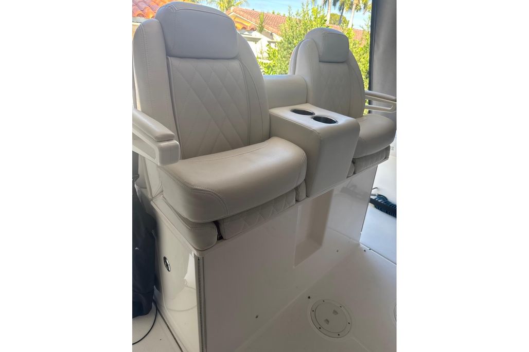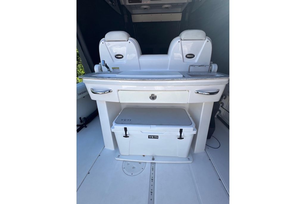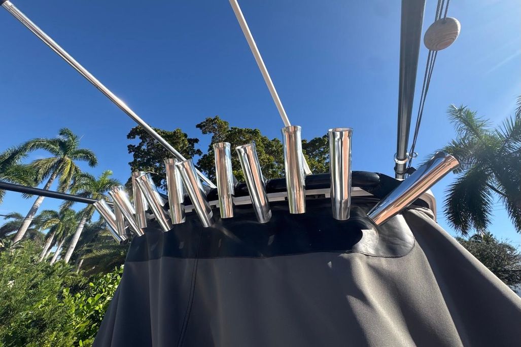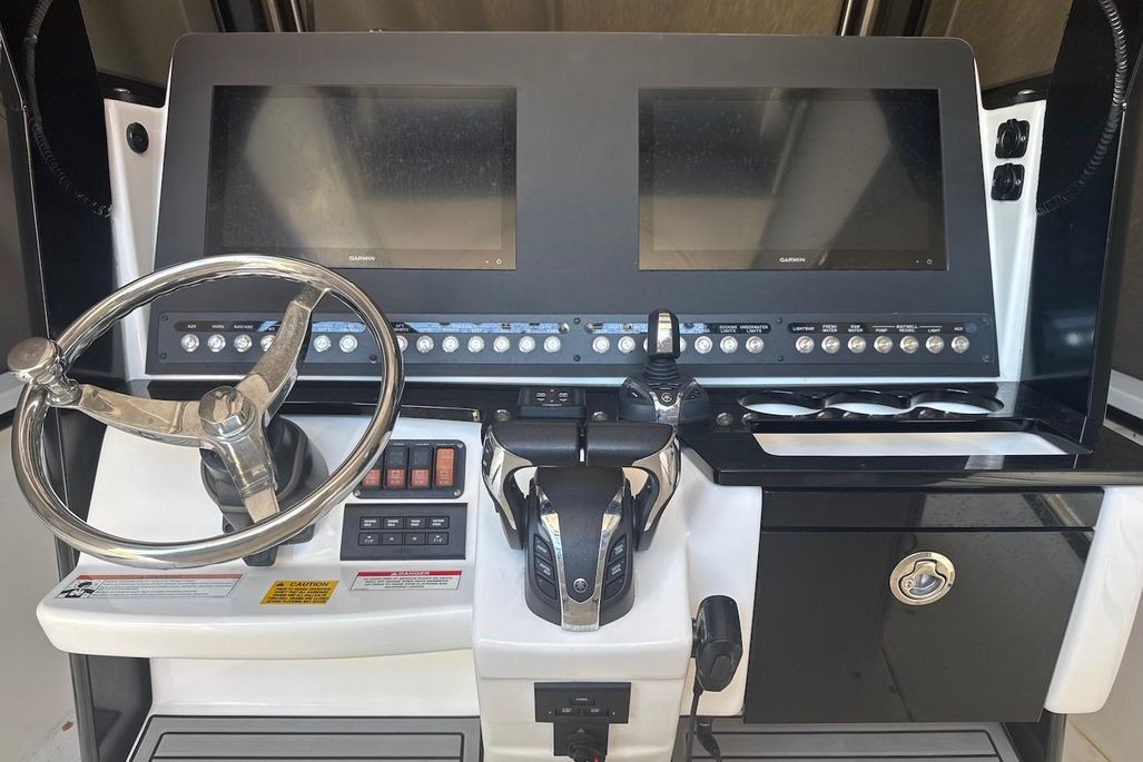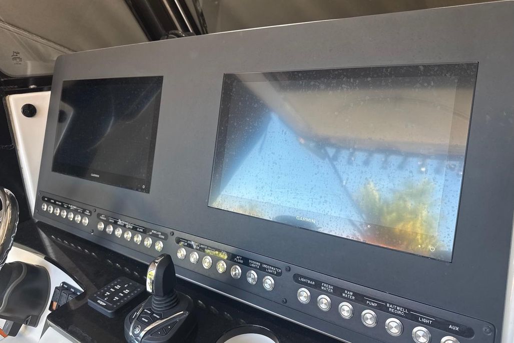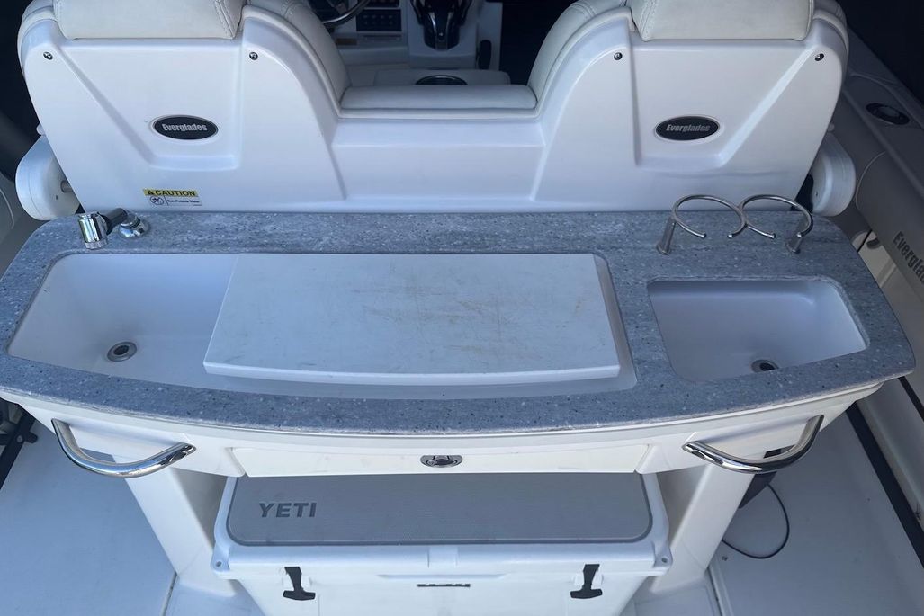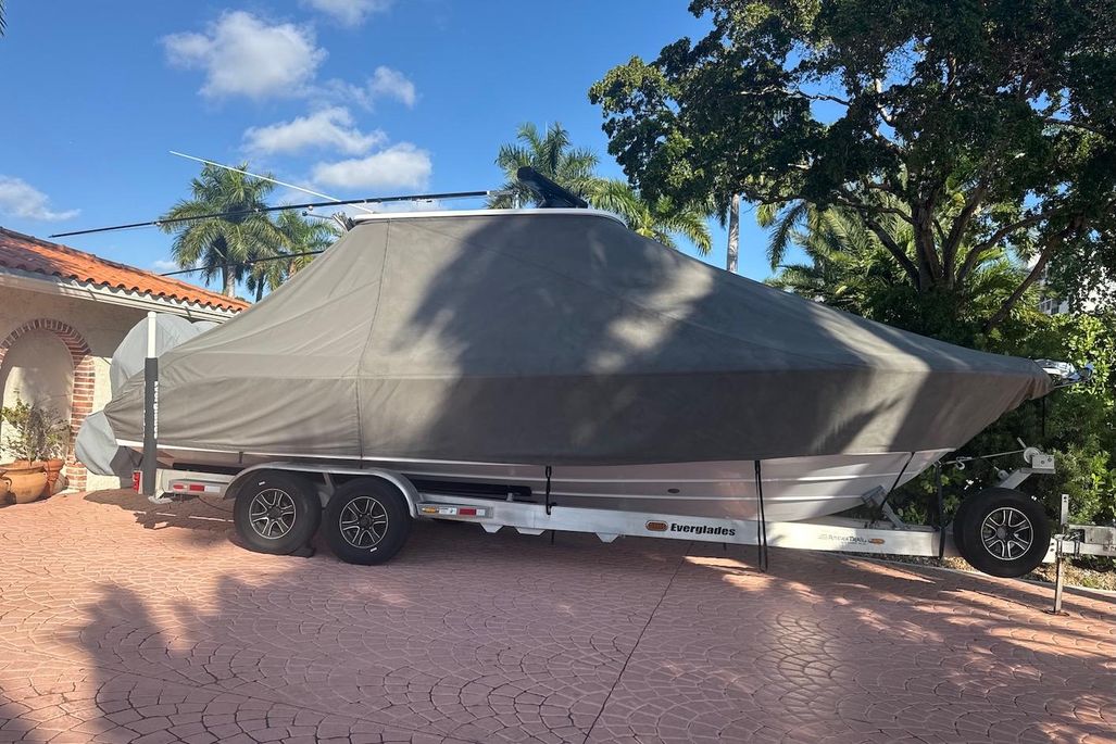 No expenses were spared outfitting the boat-The boat and engine covers were custom made by Blue Water Canvas Co. and re-waterproofed July 2025, as well as the aft and bow shades. Upholstery is in like-new shape, with beautiful white diamond stitching. The owner opted for the bow-lounge backrests with matching upholstery, and a custom helm arm-rest with cupholders. The Everglades 295 is an impressive machine on its own-boasting a quick 33 MPH cruise in around 6 seconds, but designed for a dry and comfortable ride. There's no lack of it, either, with twin bucket chair seating at the front of the helm, as well as bow lounges/storage and an easily concealed bench, aft of two helm seats. The head has ample standing room, a vanity and enough space to throw your bags. At the helm itself, you'll find twin Garmin 8616's, a Yamaha CL7 Display, Fusion Apollo RA770 audio system, joystick controls, and an array of boca-tec switches, powering two large fish boxes, a live well, windlass and electric windshield, to name a few of the more notable. The boat is rigged for fishing, with a 75m radar, Taco 15' Grand Slam 280 outriggers, 13 rocket launchers, and center bait station featuring a roll-out yeti cooler.There are also rods and reels available for purchase- please inquire!Trailer is included.For more information, please reach out. All service records and equipment manuals are available.