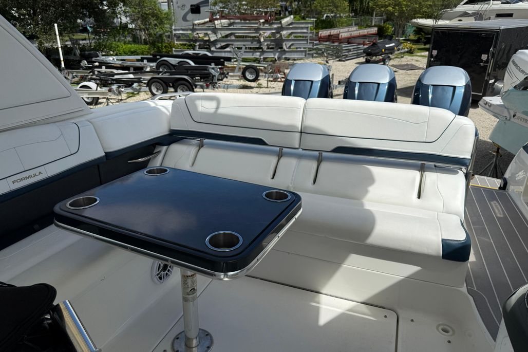 Introducing the stunning 2021 Formula 350 Crossover Bowrider OB, a remarkable blend of luxury and performance. With an impressive overall length of nearly 38 feet, this bowrider features a sleek fiberglass hull designed in a deep Vee shape, ensuring a smooth and stable ride on the water. Powered by three robust Mercury Verado 350 outboard engines, delivering a total of 1,050 horsepower, this vessel promises exhilarating speed and agility. The advanced joystick control enhances maneuverability, making it a breeze to navigate in any conditions. Inside, the boat offers a well-appointed cabin and head, providing comfort for day trips or weekend getaways. The thoughtful design and spacious layout make it perfect for entertaining guests or enjoying family outings. Experience the thrill of the open water with the Formula 350 Crossover Bowrider, where style meets performance in every detail.