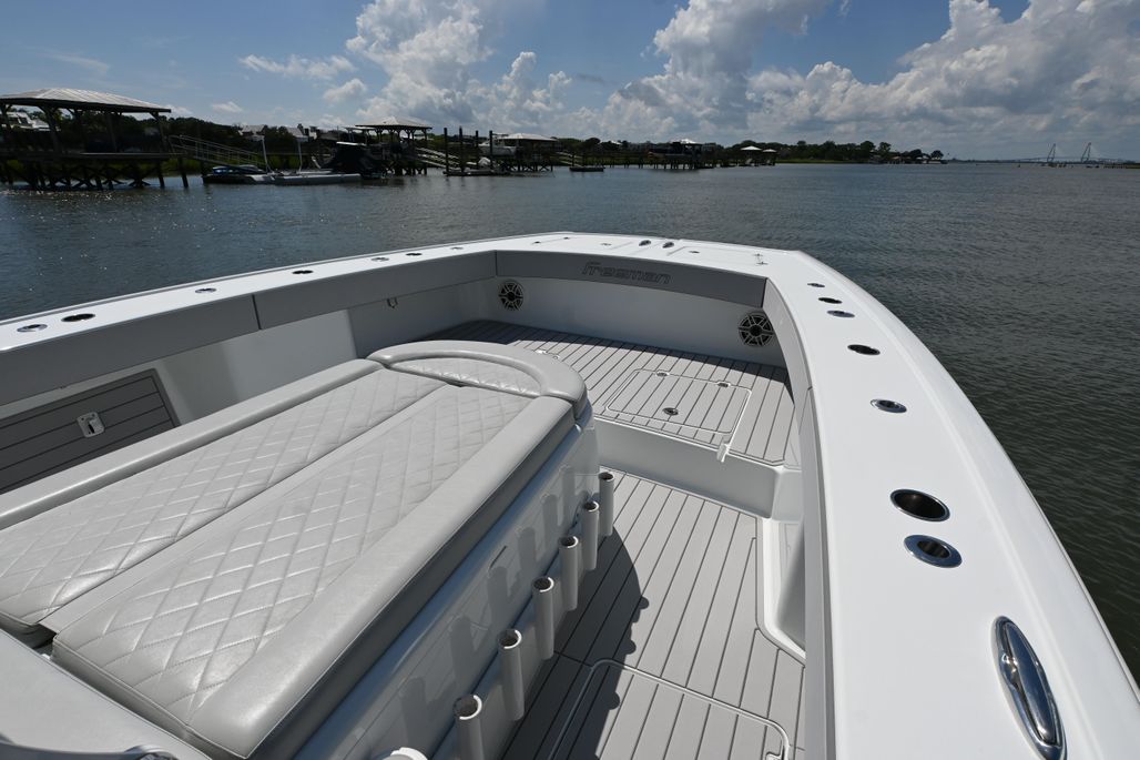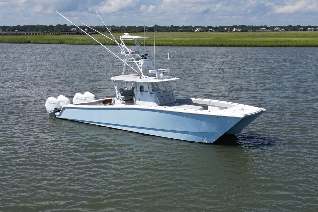 Look no further!! Here is a beautiful used 2021 Freeman 37 VH with upper station powered by Mercury V8 300's! She is absolutely gorgeous with her Ethereal Blue hull sides and Mist colored upholstery. She's been pampered her whole life and ready for her next owner. This was the first 37 to have the new 38 cap and liner installed so a dive door can easily be added! The only reason for selling is the owner has another larger Freeman on the way so this one must go. Skip any sort of wait at the factory and get this one ASAP. Call for more details and to schedule a showing.