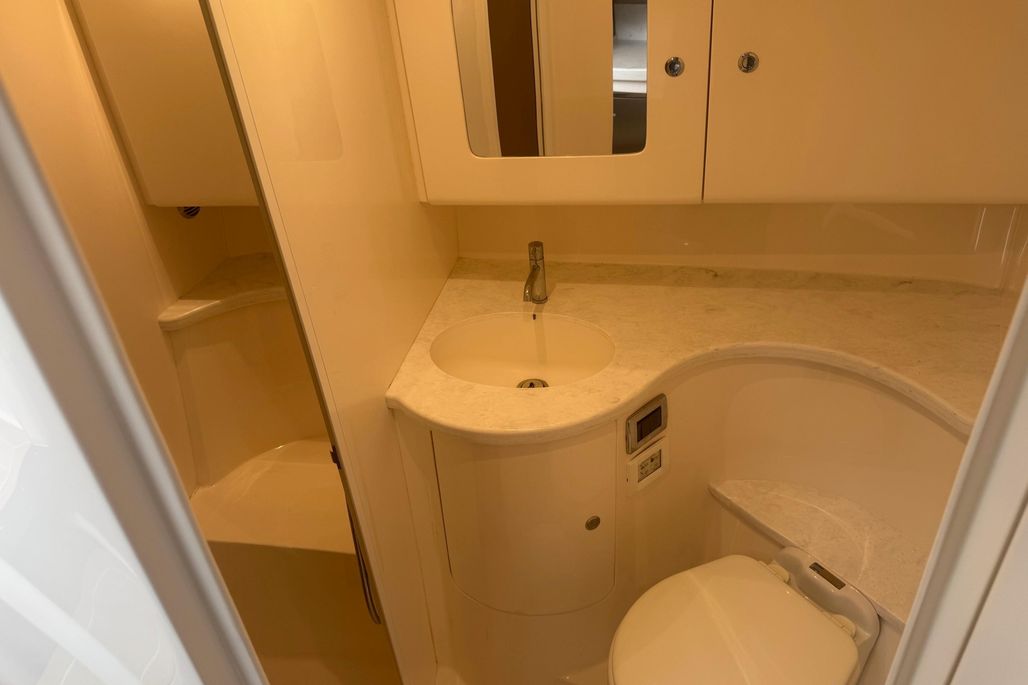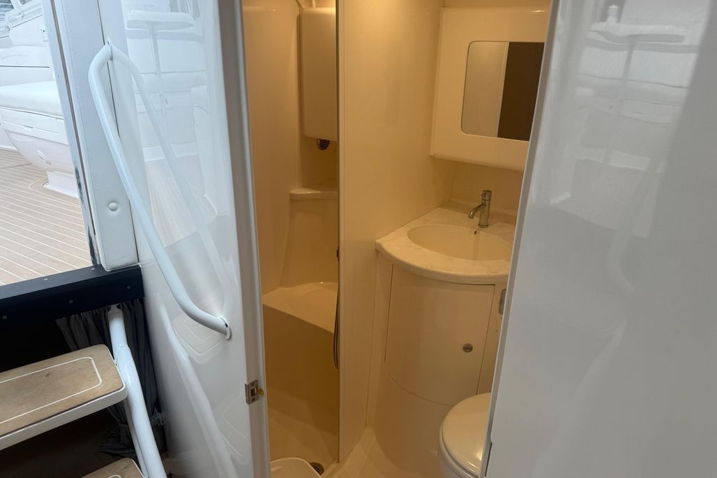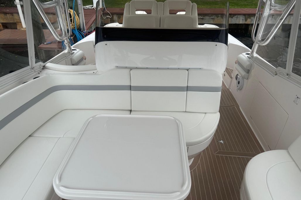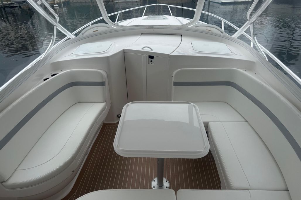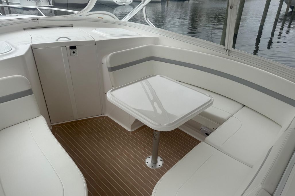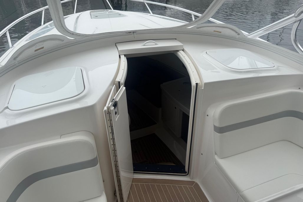 Sleek and stylish, the 409 Valor offers all the enhanced accommodations you would expect in a luxury performance cruiser. From a private head with shower stall and separate master berth with queen bed and hull-side windows to a forward cabin section that easily converts to a large double berth. But none of it comes at the expense of the most advanced technology and fabrication techniques that deliver an incomparably smooth, dry ride with unparalleled performance. For divers and swimmers, it’s packed with thoughtful design features like a hull-side dive door with step ladder and grab rails. Entertaining is elevated with cozy, custom seating and a stylish wet bar while serious sport fishermen will take note of the baitwells, rod holders, tank storage, tackle boxes and raw water washdown.