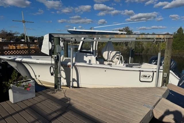 Introducing the 2021 Sea Hunt Ultra 265 SE, a remarkable center console boat that combines performance and style. With an overall length of 26 feet, this vessel is designed for both comfort and functionality. The deep vee hull, crafted from durable fiberglass, ensures a smooth ride even in choppy waters, making it perfect for adventurous outings. Powered by twin Yamaha outboard engines, each delivering 150 horsepower, this boat promises impressive speed and agility on the water. The thoughtful design includes ample space for equipment, enhancing your boating experience. Whether you're fishing, cruising, or entertaining, the Sea Hunt Ultra 265 SE is equipped to meet your needs. Its sleek lines and modern aesthetics make it a standout choice for any boating enthusiast. Experience the perfect blend of performance and elegance with this exceptional vessel.