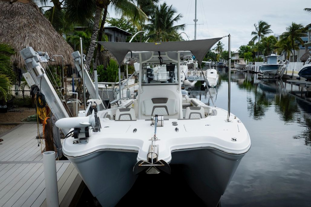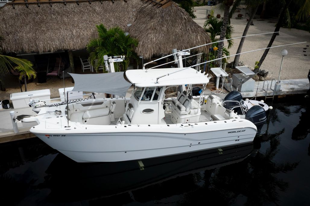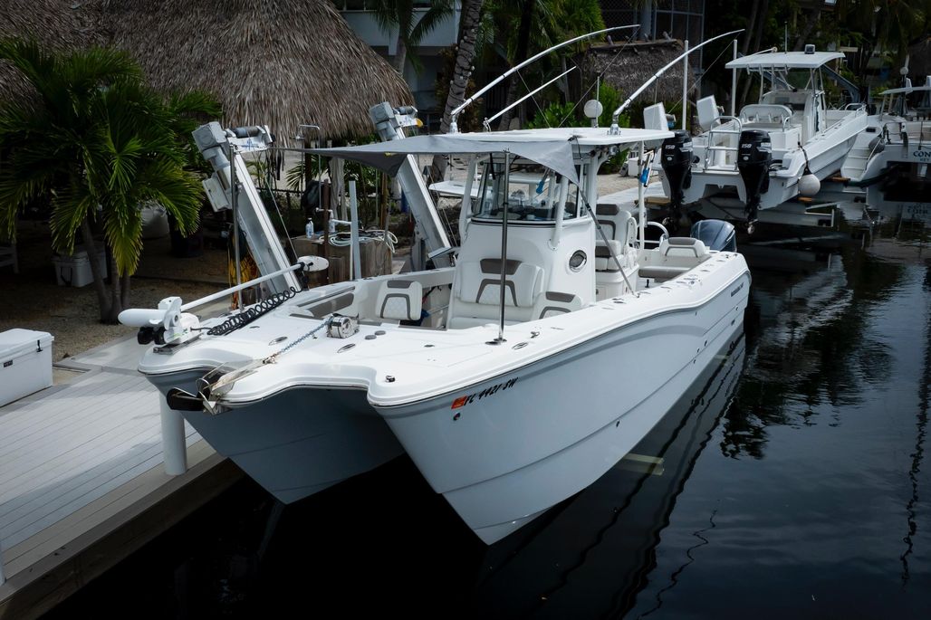 Introducing the 2021 World Cat 295 CC, a remarkable power catamaran that combines performance and comfort. With an overall length of 29.08 feet, this vessel is expertly crafted from durable fiberglass and showcases the classic catamaran shape, which enhances stability and maneuverability. Powered by twin Yamaha F300 outboard engines, each delivering 300 horsepower, this boat achieves an impressive cruising speed of 25 mph and a maximum hull speed of 55 mph, ensuring exhilarating adventures on the water. With only 450 hours of use, these engines promise reliability and efficiency. The 295 CC is equipped with modern features, including joystick control for effortless navigation and an electric windlass for convenient anchoring. Accommodating up to six passengers, it offers ample seating for enjoyable outings. This power catamaran is designed for those who appreciate both performance and comfort, making it an excellent choice for your next maritime journey.