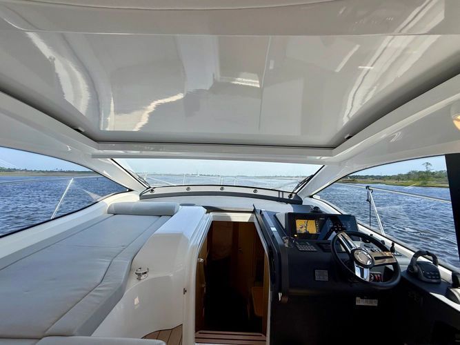Notable options include joystick, sunroof, convertible aft lounge, and full galley down below.