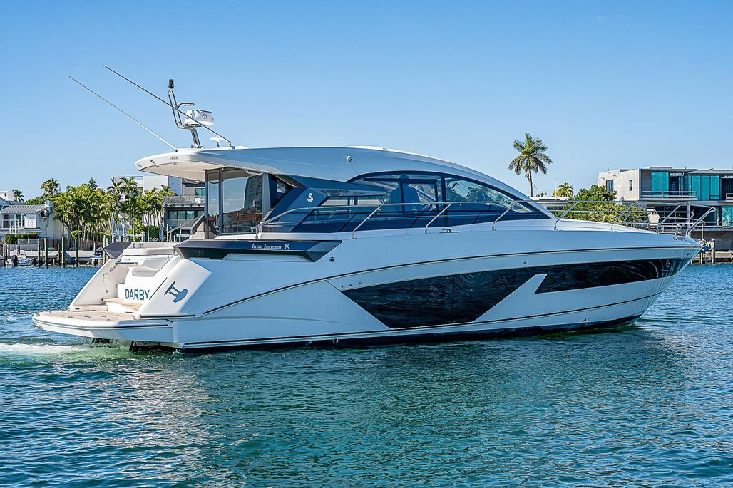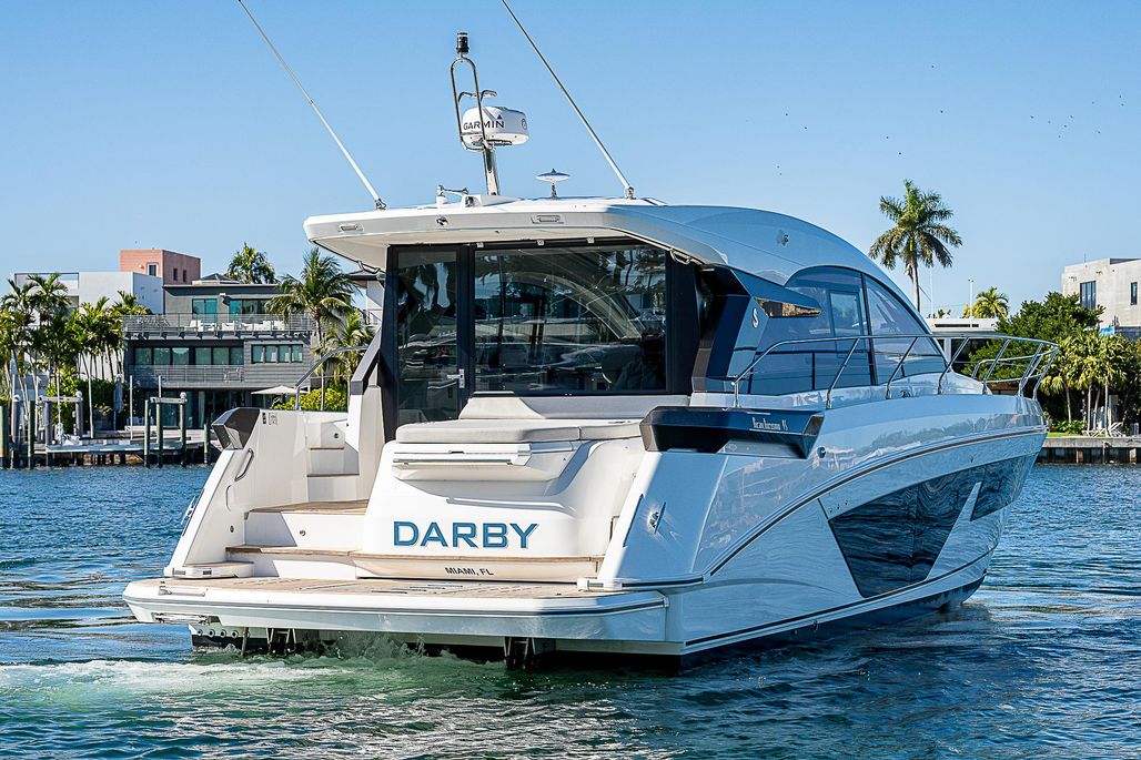 Sleek and stylish, this 2022 Beneteau GT45 is built to impress. With less than 150 hours on her Volvo D6 engines, spacious two-cabin layout, Penta joystick convenience, and bow thruster assistance, Darby is designed for performance, entertaining, and all-day comfort. The perfect “Miami boat”, she is fully turnkey and ready for her next discerning boat owner. Easy to see at Grove Isle Marina. Call to schedule a showing today!