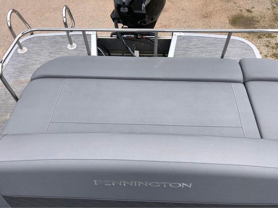 Introducing the 2022 Bennington 24 RTSB, a stunning pontoon boat that combines elegance with performance. With an overall length of 23 feet, this vessel is crafted from durable aluminum, ensuring both strength and lightweight maneuverability on the water. Powered by a robust 200 hp Mercury outboard engine, it promises exhilarating rides and smooth cruising experiences. The boat's design emphasizes comfort and versatility, making it perfect for leisurely outings or lively gatherings with friends and family. Its thoughtful features enhance the boating experience, providing a reliable and enjoyable time on the water. Whether you're exploring serene lakes or enjoying a day on the river, the Bennington 24 RTSB is ready to deliver unforgettable moments. Embrace the joy of boating with this exceptional model, where style meets functionality in perfect harmony.
