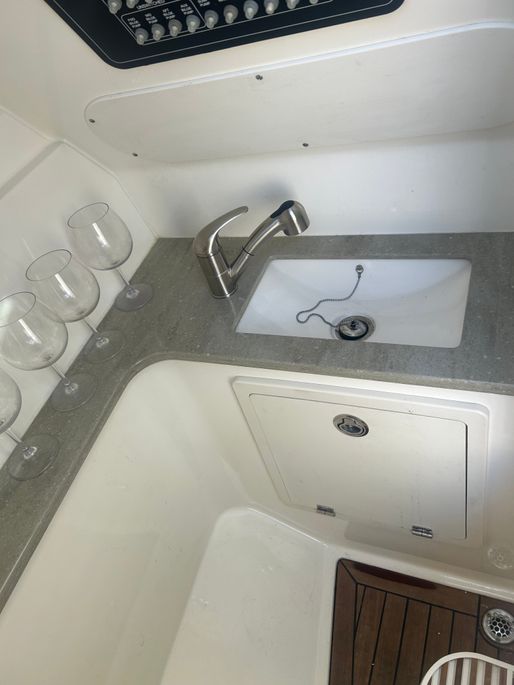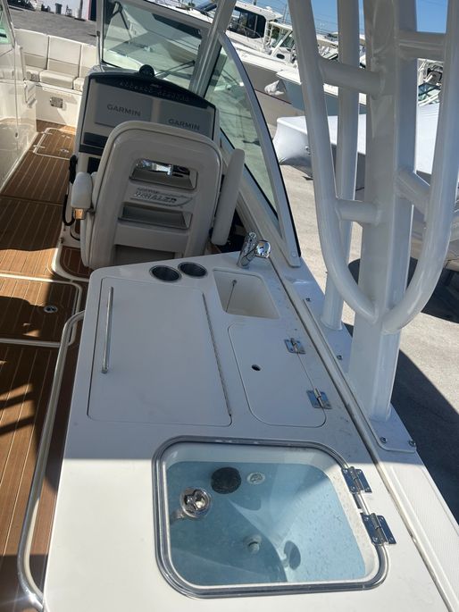 Dual JPO 300V8 (345 hours),SS Anchor,White rubrail with SS insert,Bow Cushion,Bow Table,Deluxe Prep Center with Livewell,Spotlight,Underwater Lighting,Electric Grill 120V,Inverter,Sunshade Retractable,Premium Audio Package,Active engine trim,