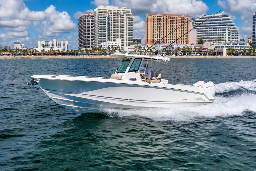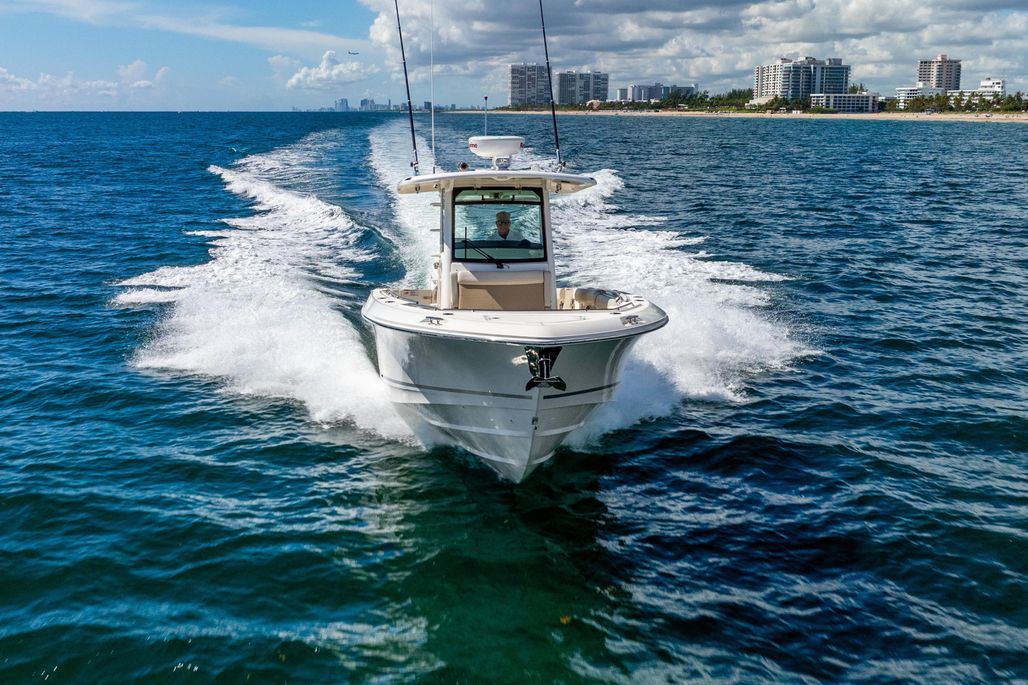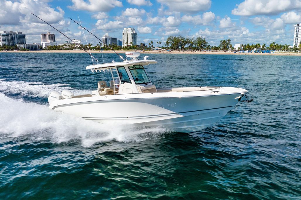 2022 Boston Whaler 330 Outrage with repowered dual 2024 Mercury 400 hp V10 JPO white outboard engines with approximately 28 hours. Hull warranty good through 11/29/2031. Engine warranty good through 6/14/2027.