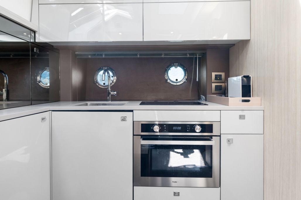 Designed with comfort and practicality in mind, the yacht offers two well-appointed cabins and two heads, providing generous space for relaxation and overnight stays. Joystick control ensures effortless maneuverability, making docking and close-quarter handling simple and stress-free.