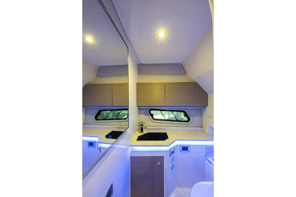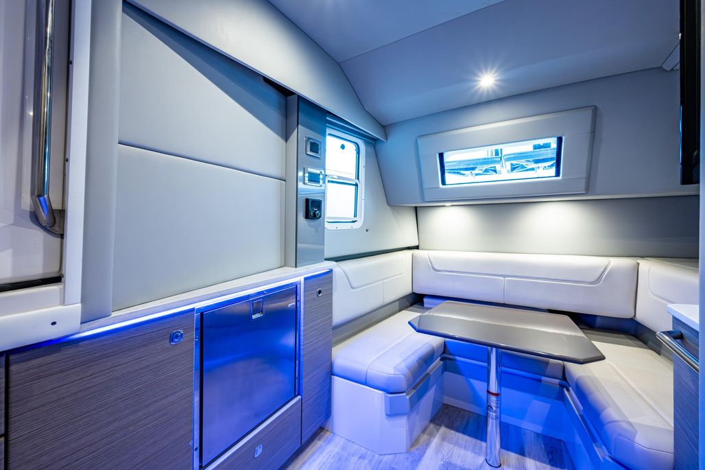 Luxurious Cabin with galley, convertible dinette, and enclosed head