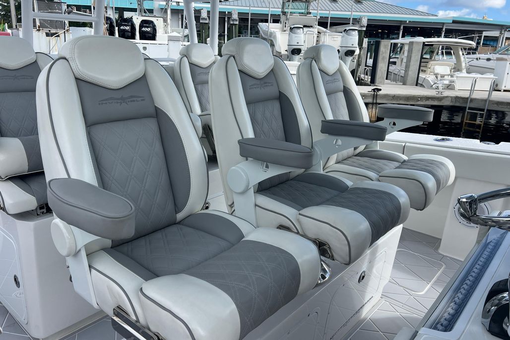Introducing this stunning 2022 Invincible 46 Catamaran, that combines elegance with high performance to give her new owners an amazing experience. This boat is meticulously maintained by its current owner with weekly wash plan and quarterly full detail and wax. With an overall length of 46 feet, this vessel boasts a sleek Ice Blue hull designed for stability and speed. Equipped with four 2024 Mercury V10 outboard with platinum warranty till 2032, each delivering 400 horsepower, it effortlessly reaches cruising speeds of 45 mph and can achieve a maximum speed of 65 mph. The catamaran features advanced joystick control for seamless maneuverability, double row seating for amazing overall boating experience. Designed for adventure, it is perfect for those seeking thrilling excursions on the water. The spacious layout allows for comfortable movement, making it ideal for entertaining guests or enjoying a day out on the waves. With its modern design and robust engineering, the Invincible 46 Catamaran is a true gem.