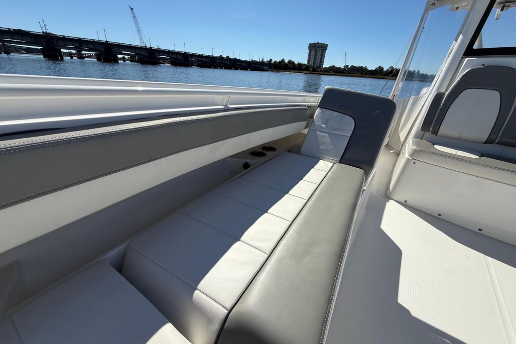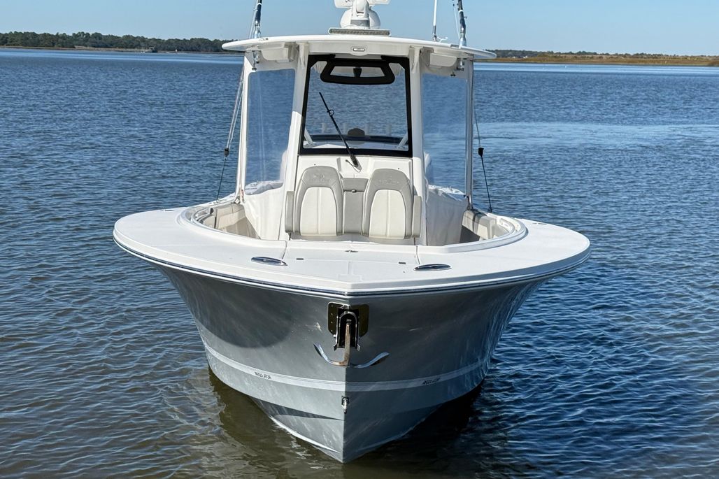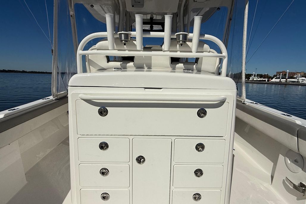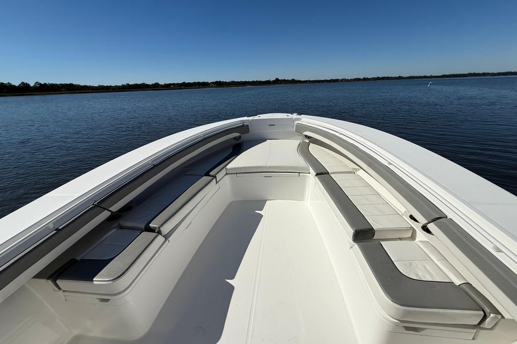 2022 Regulator 34 powered by triple Yamaha F300XSBs with Yamaha Helm Master Joystick Control with Multi Mode Set Point and Yamaha EX Autopilot.