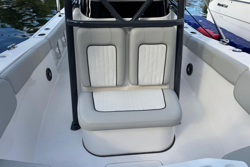 The Sea Fox 248 Commander boasts a redesigned layout and console that draws in many of the popular features found on our larger Commander models. Those include our popular aquarium view livewell, flip-out bow backrests and bow table design hosting a refined, capable offshore platform with more than a touch of style.