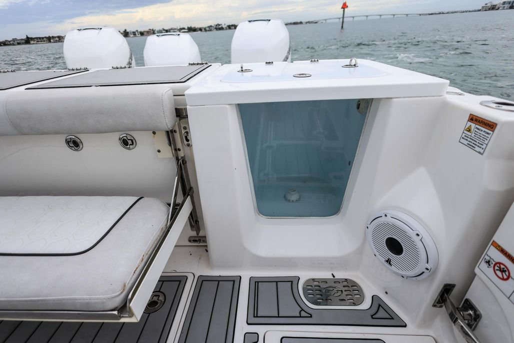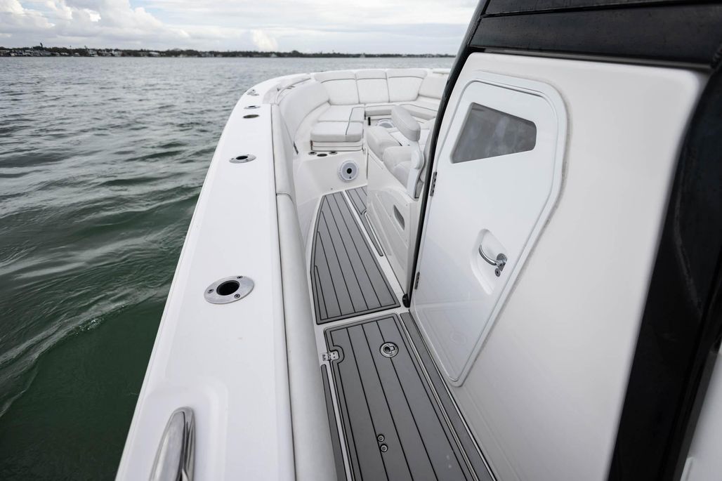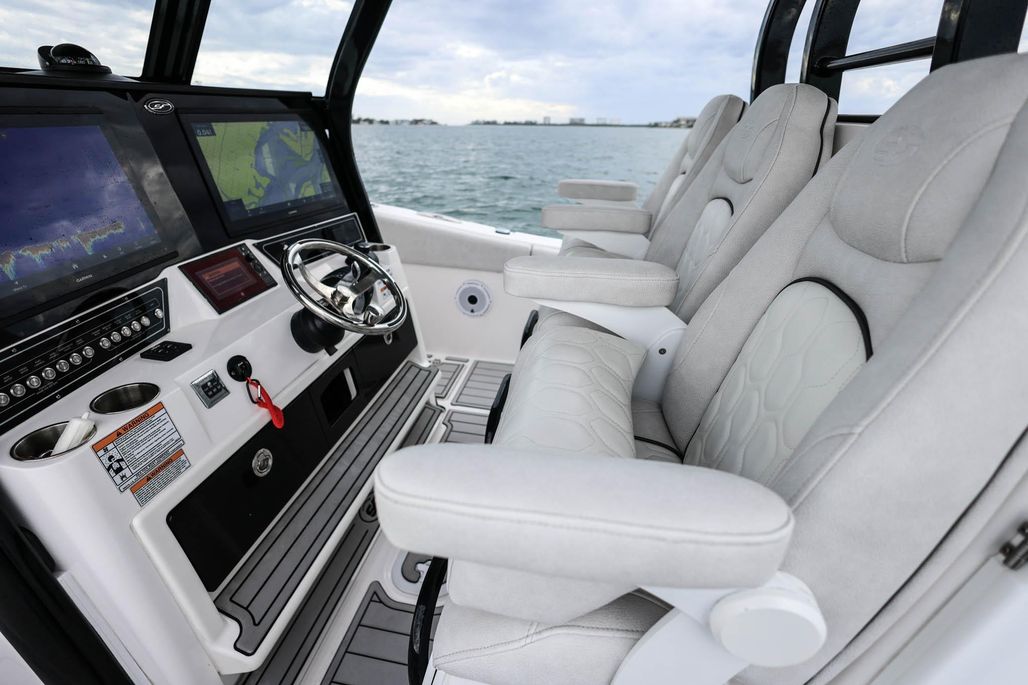 At 36’ LOA and 11’2” beam, the 368 Commander has a sharp 23 degree deadrise to handle the roughest water conditions. The 3” composite transom can hold either triple Yamaha F300 or twin F425’s. The hull has an infused lamination process and the first of its kind in the Sea Fox line up. The foam filled stringer mold is a beast with massive bonding points throughout the hull to ensure a solid ride in any weather condition.