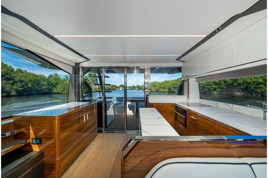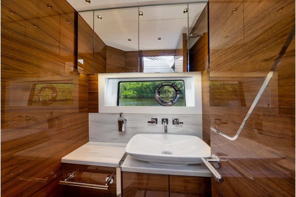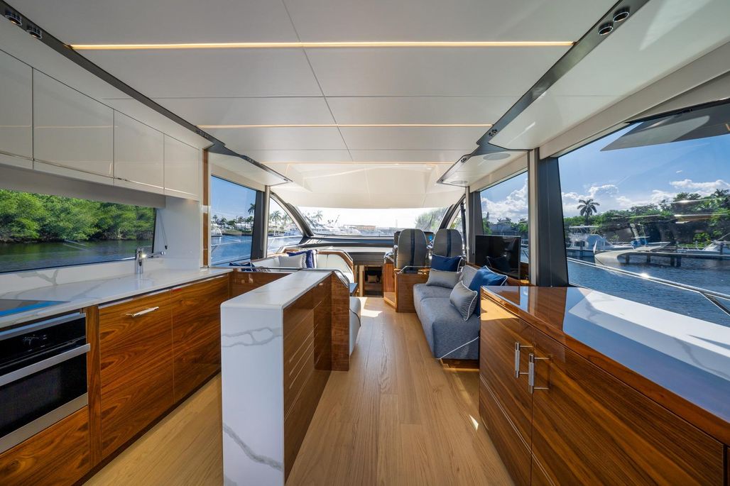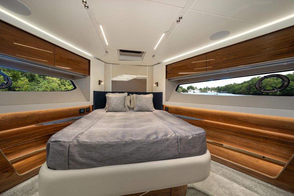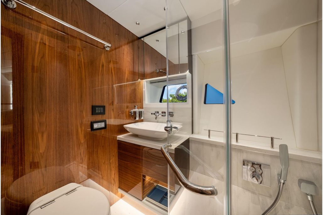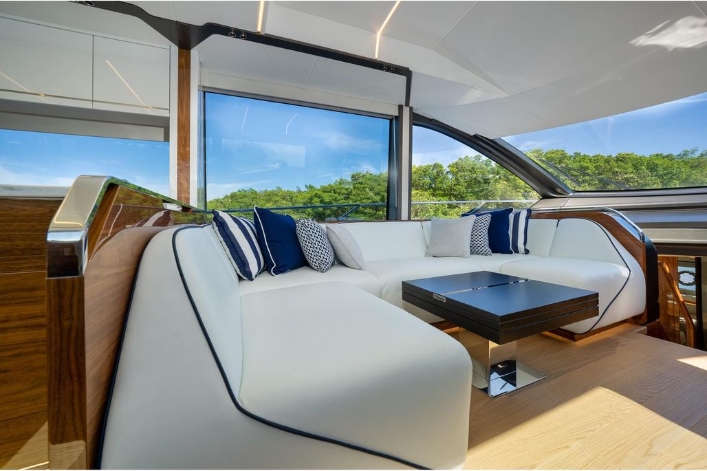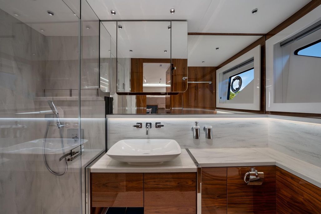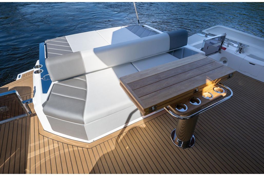 The 65 Sport Yacht combines cutting-edge innovation and luxury performance. Featuring the signature SkyHelm™ with adjustable IPS joystick controls, it offers a dynamic driving experience similar to a high-performance convertible. Its modular layout adapts for both socializing and adventure, including three spacious cabins for up to six guests and a forward crew cabin. Owners can transform the tender garage into a stylish Beach Club with sea access, bar, BBQ, and seating. Reaching speeds of up to 35 knots, the 65 Sport Yacht delivers pure adrenaline and exceptional comfort on the water.