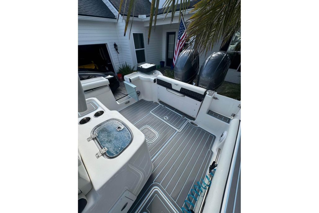 Great boat for a smooth and dry ride, especially with the Carolina flare. You can go to the sand bar with the family/kids or pull the cushions up, put the table down and go fishing. It comes with all the standard features- trim tabs, through hull transducer, fish boxes, 2 live wells, vhf, etc.