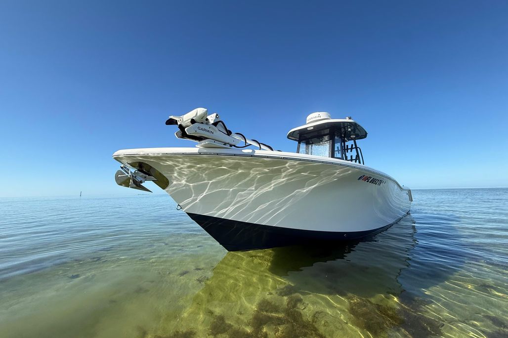 Fishing & Deck Systems • Taco Grand Slam 280 outriggers — top-mount with 15’ telescoping poles (tournament-capable spread) • Large insulated fish boxes and roomy livewell • Multiple rod holders and integrated rod storage throughout the gunwales and leaning post • Electric windlass anchor — rapid, reliable anchoring for reef/wreck or family anchoring stops • Lumitec SeaBlaze RGBW underwater lights for night fishing and ambiance • 3-bank battery charger and well-configured electrical system