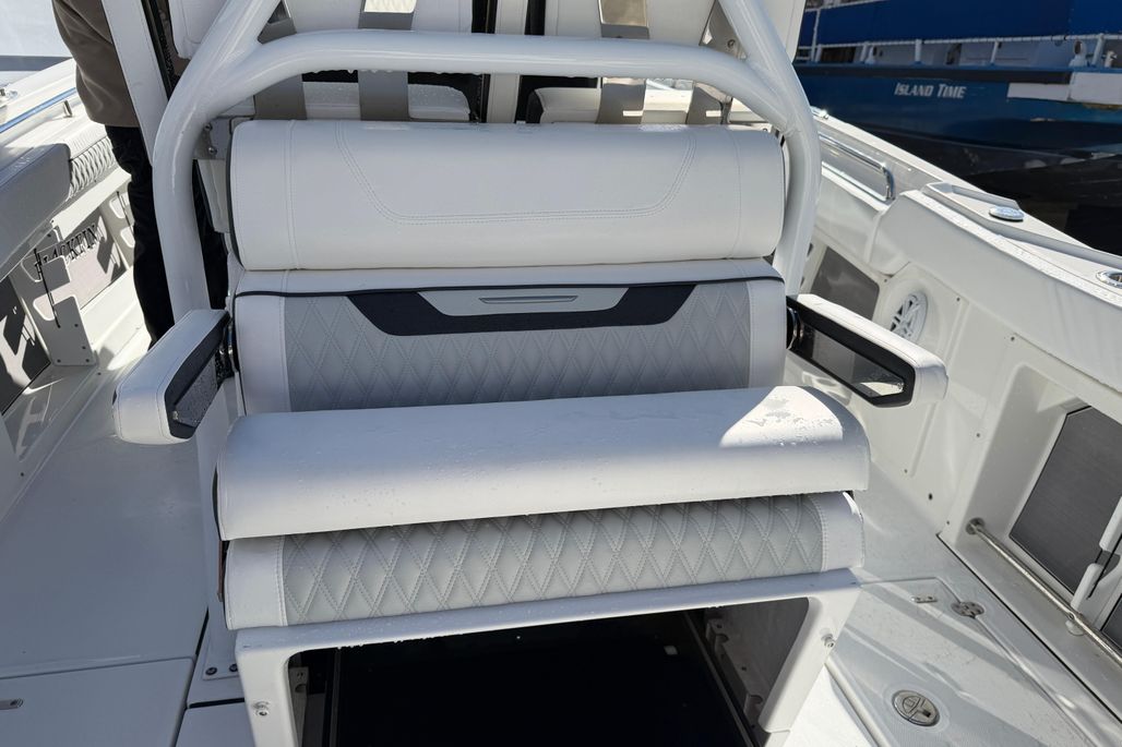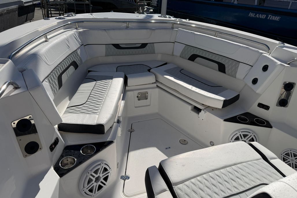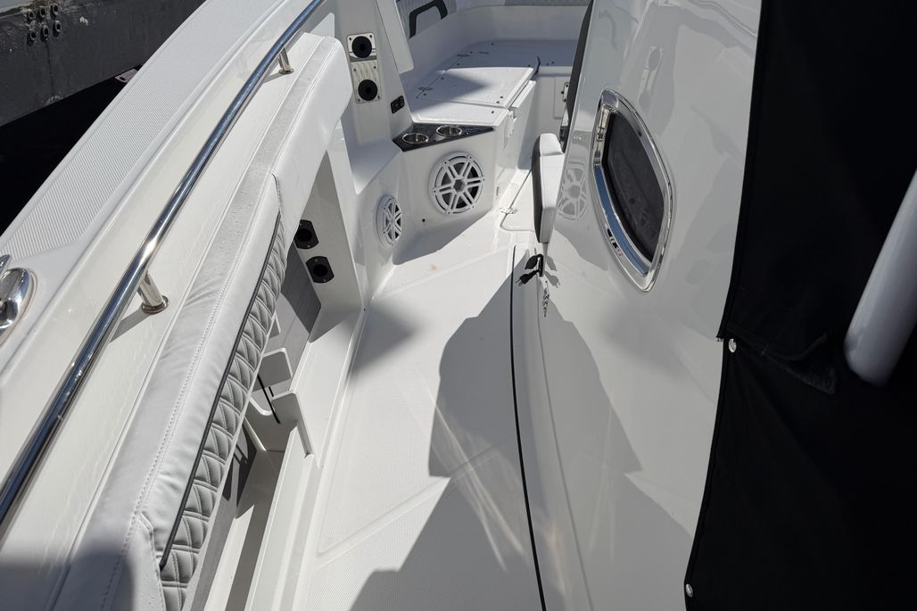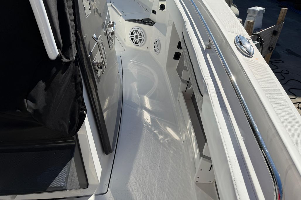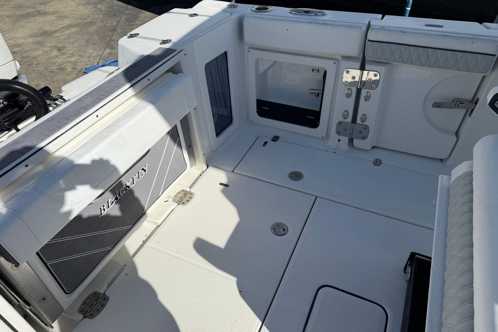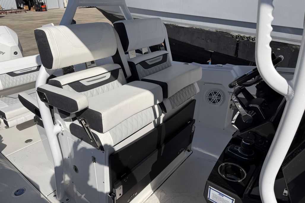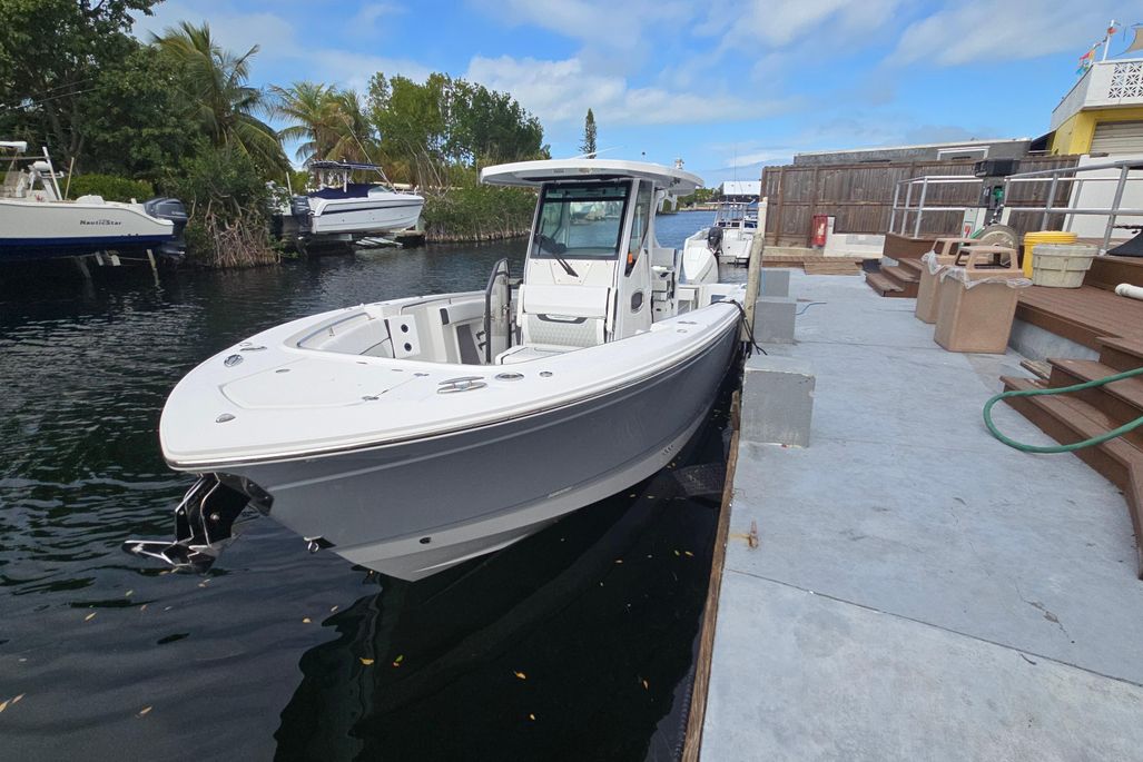 Introducing the stunning 2023 Blackfin 302 CC, a remarkable center console boat that embodies both performance and style. With an impressive overall length of 32.67 feet, this vessel is designed for adventure on the water. Its deep Vee hull, crafted from durable fiberglass, ensures a smooth and stable ride, making it perfect for both leisurely cruising and thrilling excursions. Powered by twin Mercury 300CXXL outboard engines, each delivering 300 horsepower, this boat promises exhilarating speed and agility, with only 52 hours of use. The advanced engineering of the outboards enhances maneuverability, providing a responsive experience on the water. This Blackfin 302 CC is equipped with essential features, ensuring a comfortable and enjoyable outing. Its sleek design and robust construction make it a standout choice for boating enthusiasts seeking reliability and performance. Experience the thrill of the open water with this exceptional center console boat.
