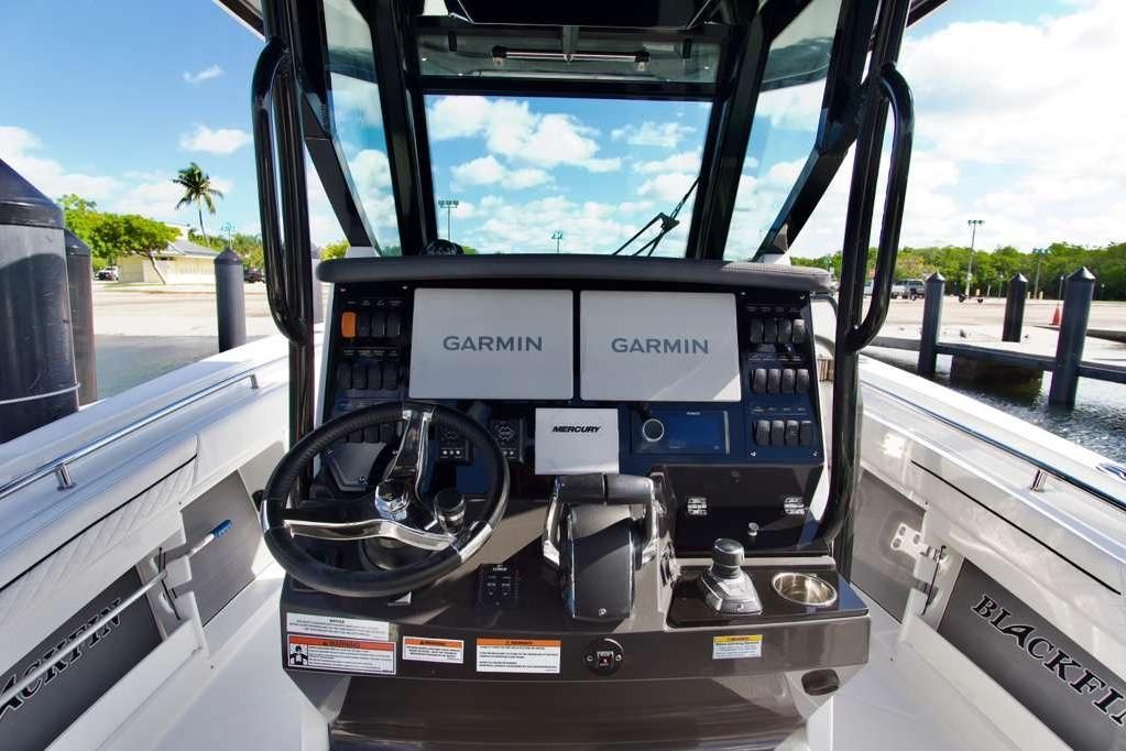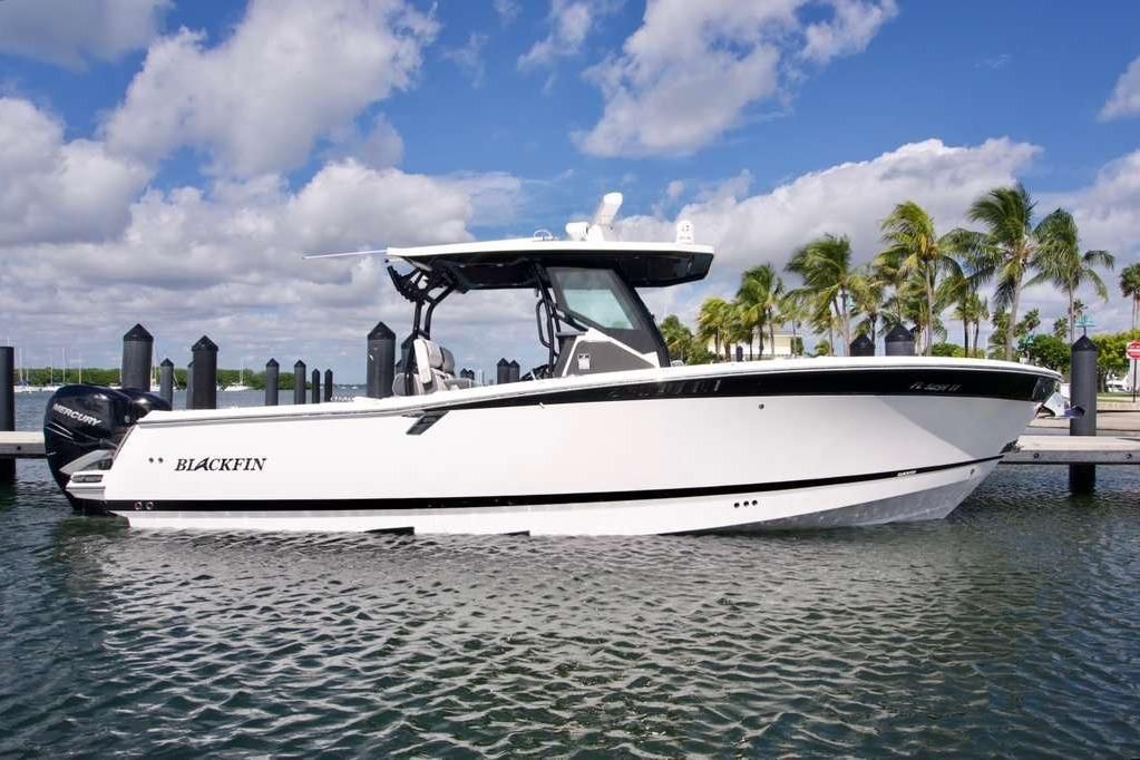 Introducing the stunning 2023 Blackfin 302 CC, a remarkable center console boat that combines performance and elegance. With an impressive overall length of 32.67 feet, this vessel is crafted from durable fiberglass, ensuring both strength and longevity on the water. Powered by twin Mercury 400 Verado engines, delivering a robust 800 horsepower, the 302 CC promises exhilarating speed and agility, making it perfect for both leisurely cruises and adventurous outings. This boat is designed for the discerning boater, featuring advanced equipment that enhances the overall experience. The thoughtful layout provides ample space for relaxation and enjoyment, ensuring every outing is memorable. Whether you're fishing, entertaining, or simply enjoying a day on the water, the Blackfin 302 CC is equipped to meet your needs with style and performance. Experience the perfect blend of innovation and tradition with this exceptional vessel.