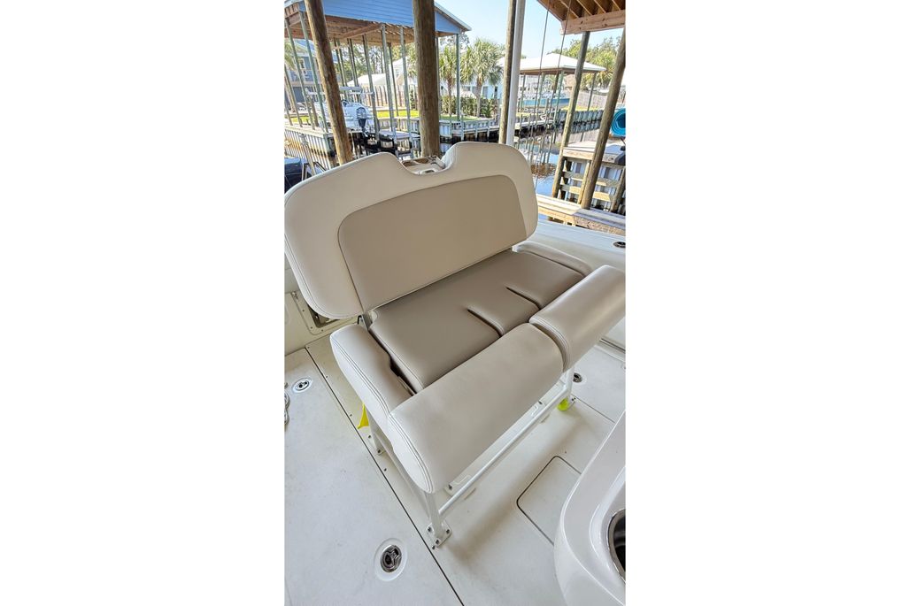 - Fold-out stern seat with backrest bolster provides additional comfort for all your crew