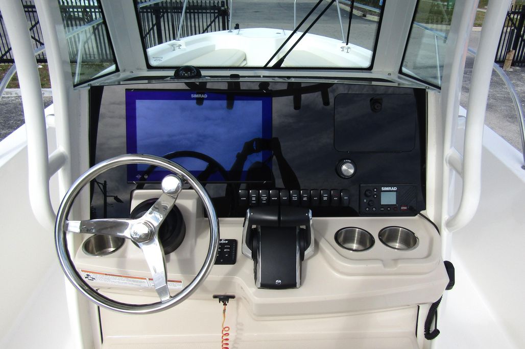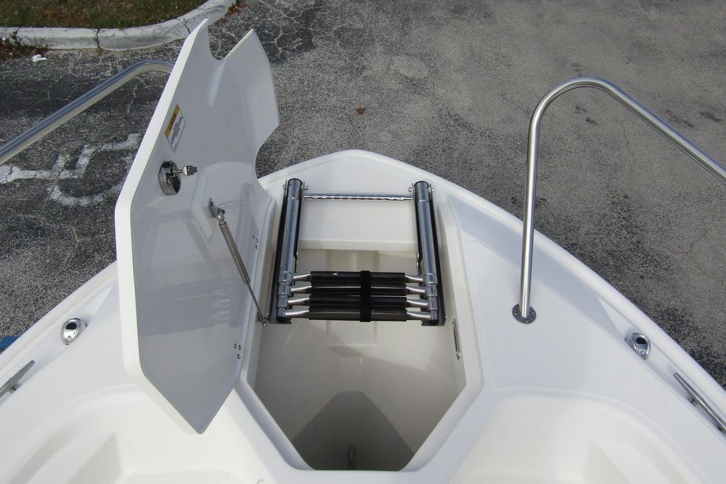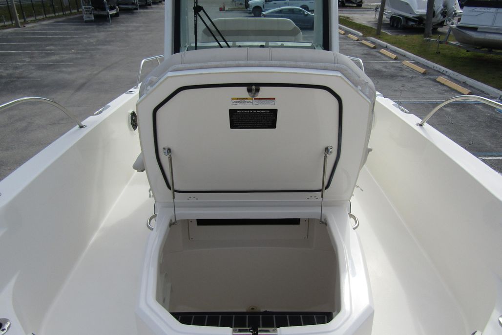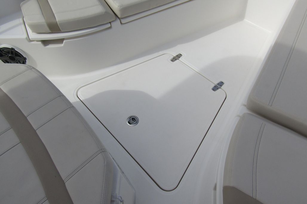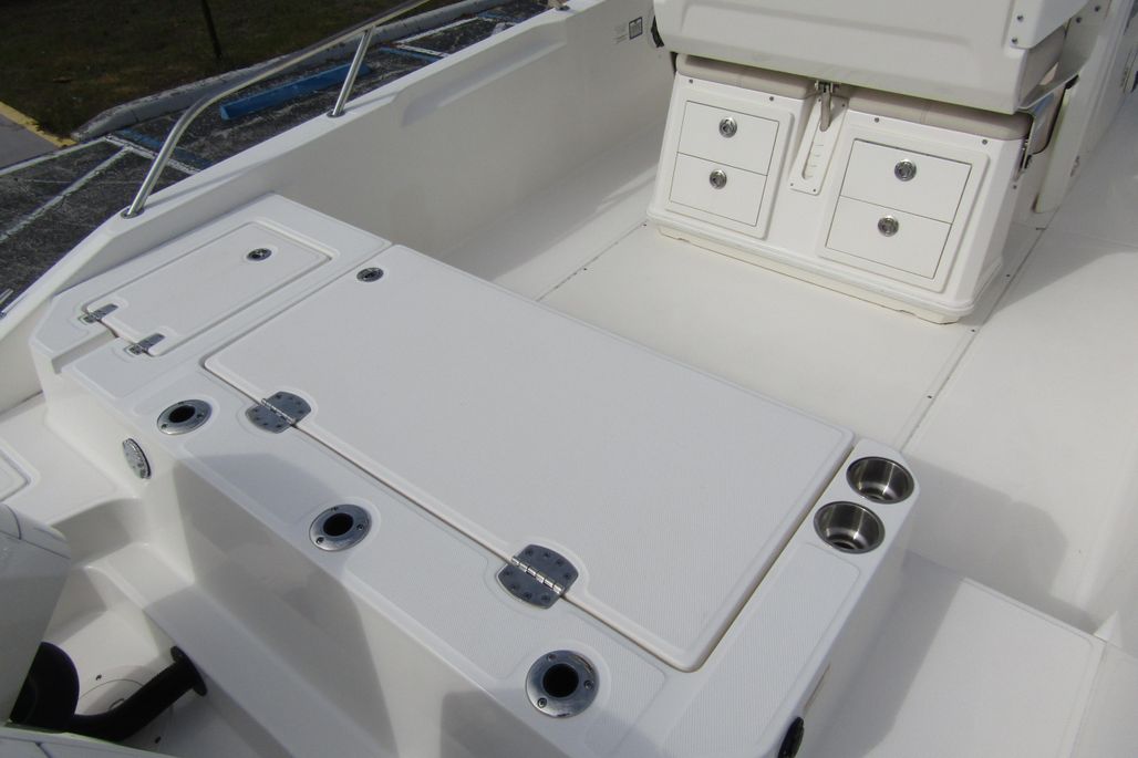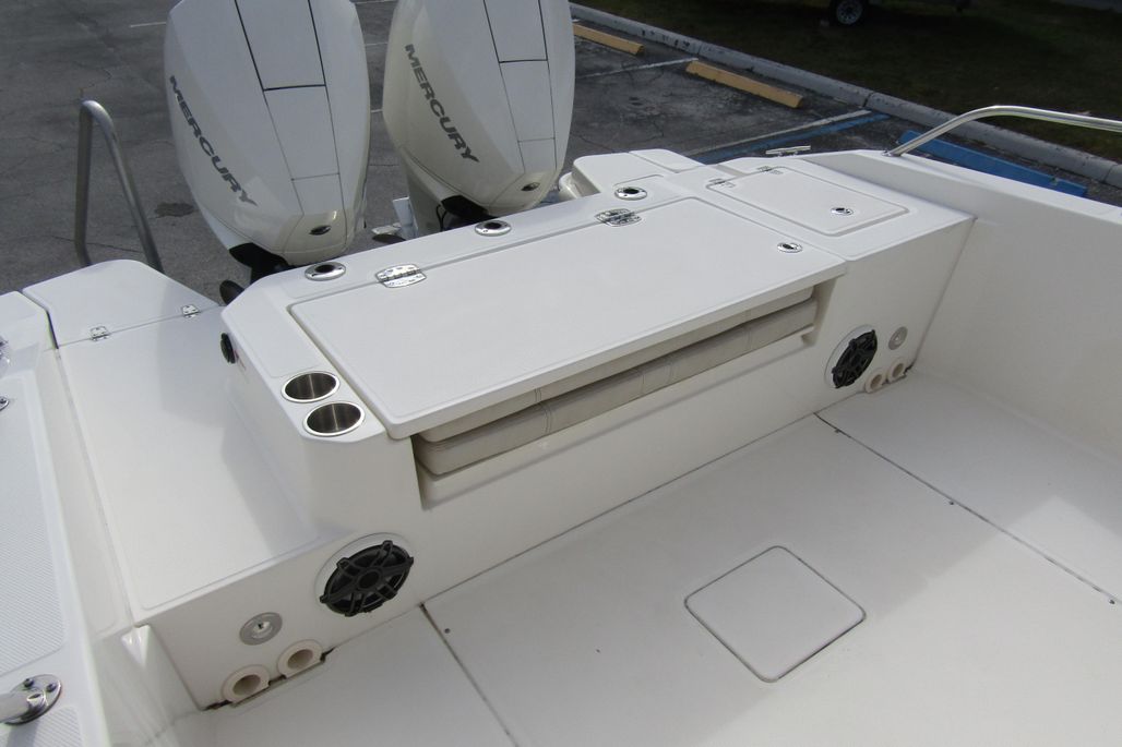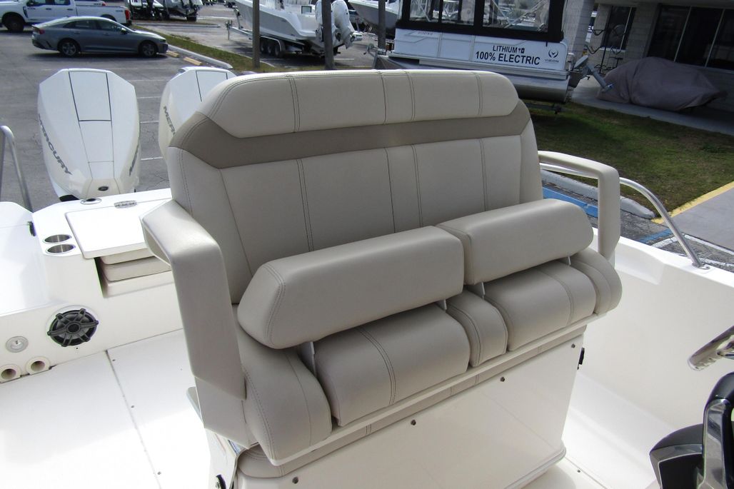This center-console design blends comfort, versatility, and performance to keep everyone onboard happy. Spacious forward seating and a generous forward lounge create an inviting social space, while concealed storage beneath the lounge provides easy access to dive tanks, buckets, and fishing rods. Large swim platforms make it easy to enjoy activities on the boat. At the helm, an innovative power seat transforms from a traditional captain’s chair into a leaning post or elevated trolling vantage point at the touch of a button. Serious anglers will appreciate ample rod storage, a standard transom livewell, and a pump-out forward fishbox, delivering exceptional fishability. Entertainment is elevated with an upgraded stereo system and customizable RGB lighting, while Digital Switching Technology allows remote control of lighting and electronics for improved battery efficiency. Rounding out the experience, a full tempered-glass windshield with integrated vents and a wiper-wash system provides superior protection and clear visibility in all conditions.