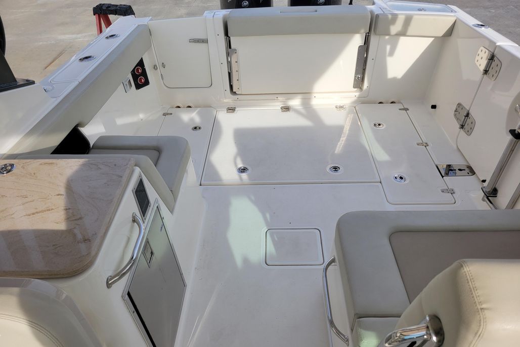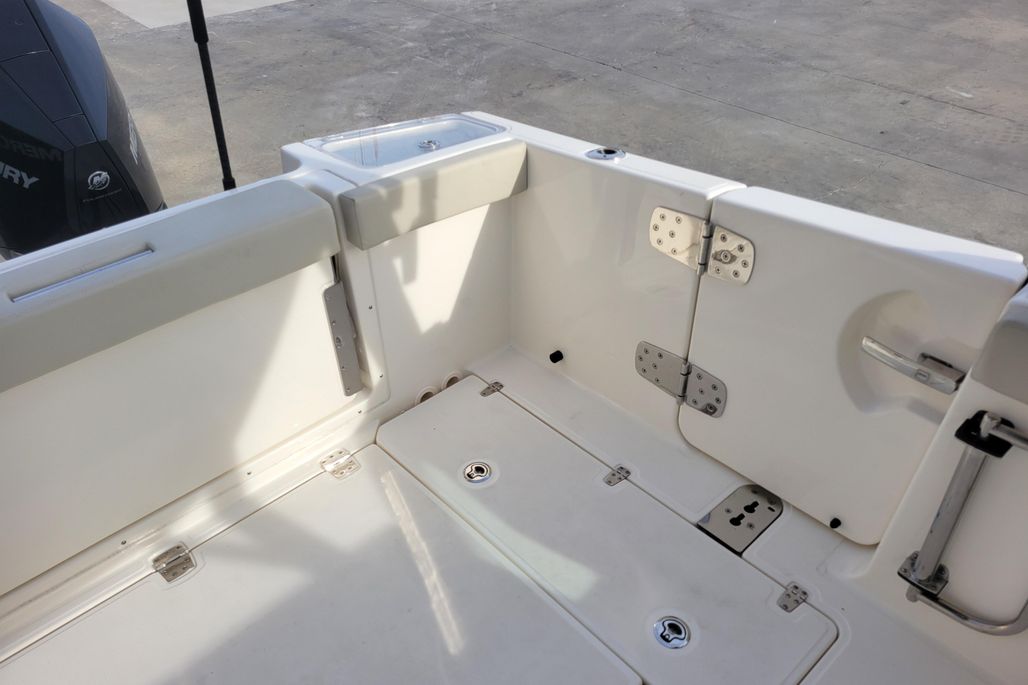 - Dedicated fishing features include cockpit fishboxes, transom livewell and strategically-placed rod holders